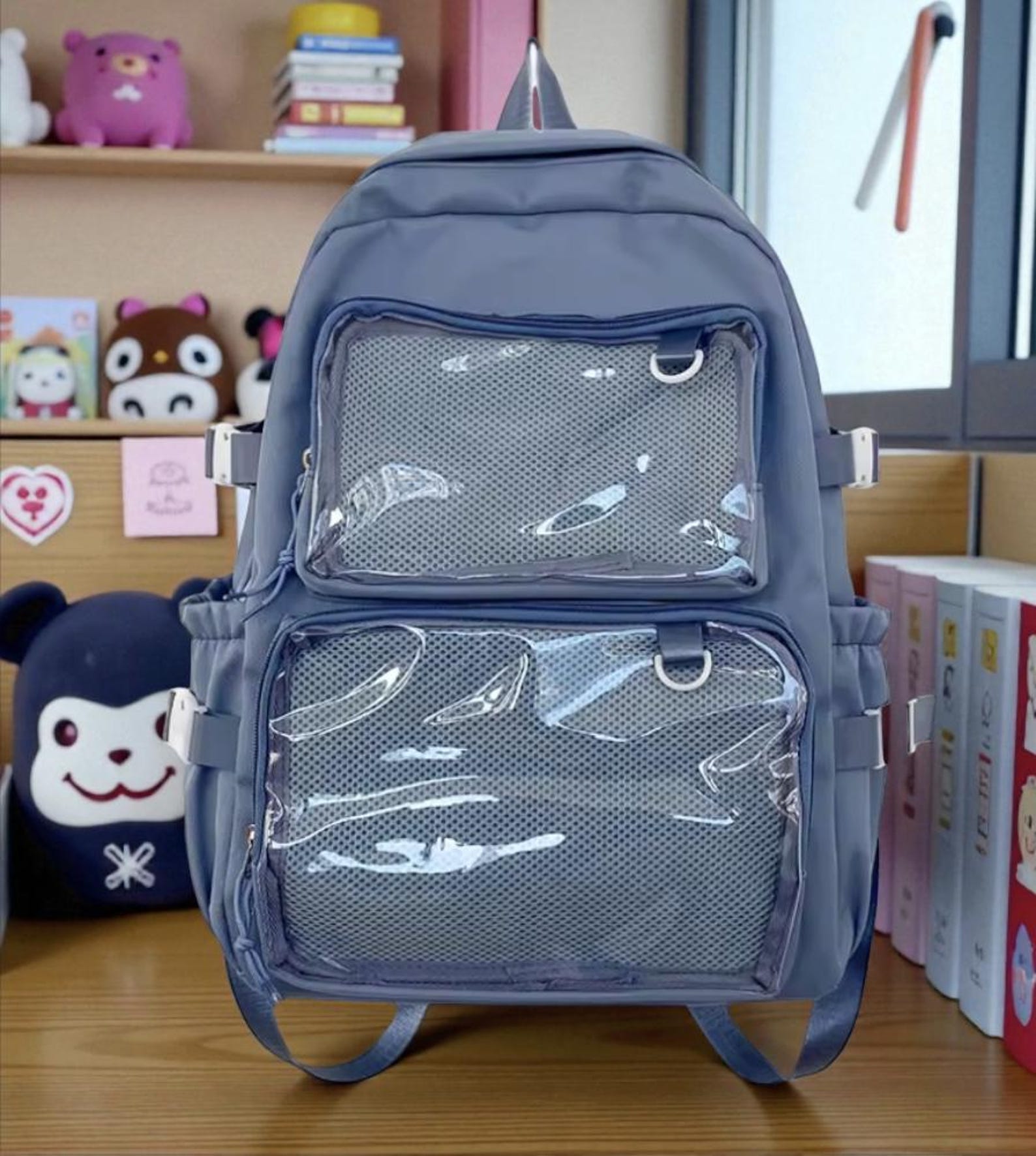 Classic Ita Bag Backpack: This style features a clear front pocket, allowing users to showcase their favorite accessories, such as pins, patches, or plushies. The transparent design is ideal for those who want to personalize their bag while keeping their belongings visible.