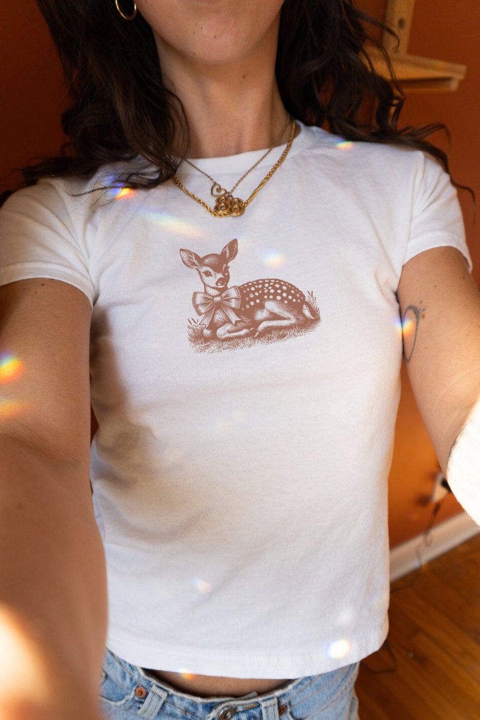 Fawn Coquette Vintage Drawing Cinnamon Girl Aesthetic Baby Deer Y2K Baby Tee Gildan 5000B