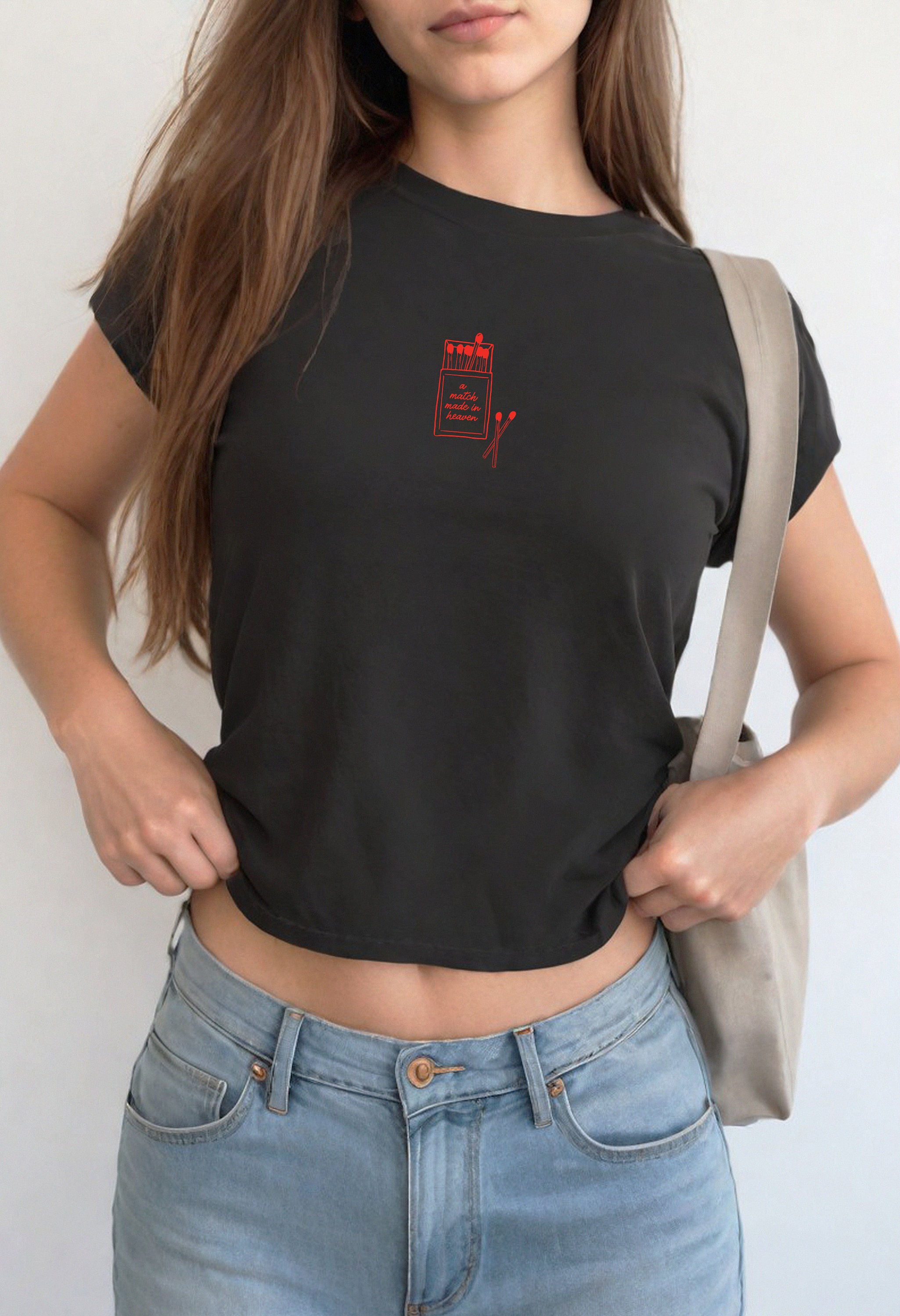 Retro Match Box Design Baby Tee , Baby T, Cute Baby Tee, Crop T Shirt, Match Tee, y2k baby tee, 90s baby tee, y2k, Crop