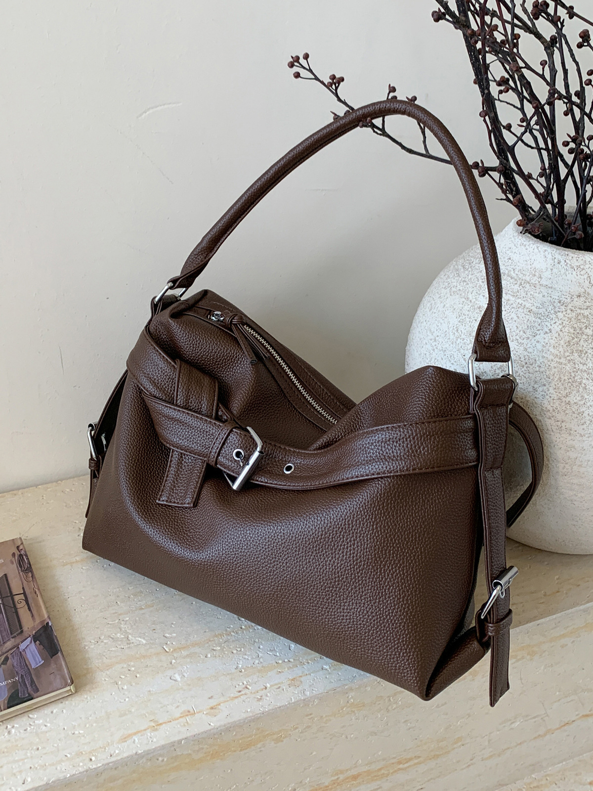 This tote is absolutely perfect! The leather is so soft yet sturdy, and the belt buckle detail gives it such a cool, retro vibe. It holds everything I need without looking bulky, and the shoulder strap is super comfortable. It’s incredibly versatile—I can dress it up or down. Absolutely in love with this purchase!