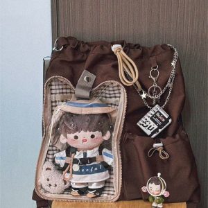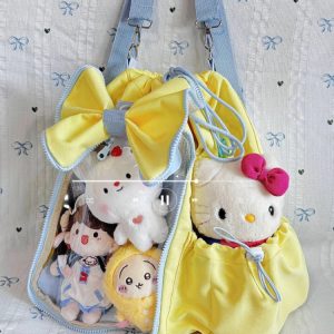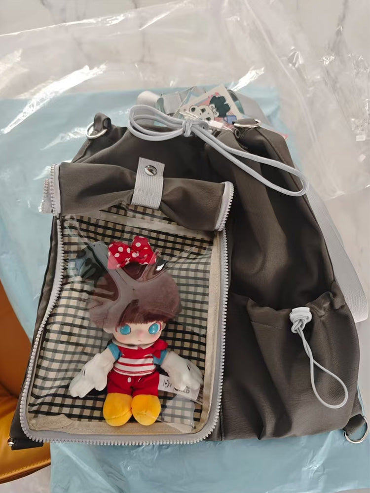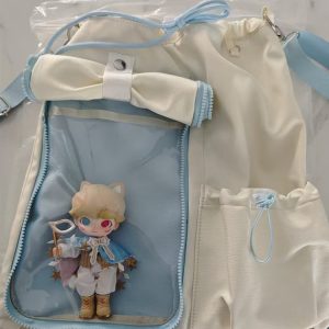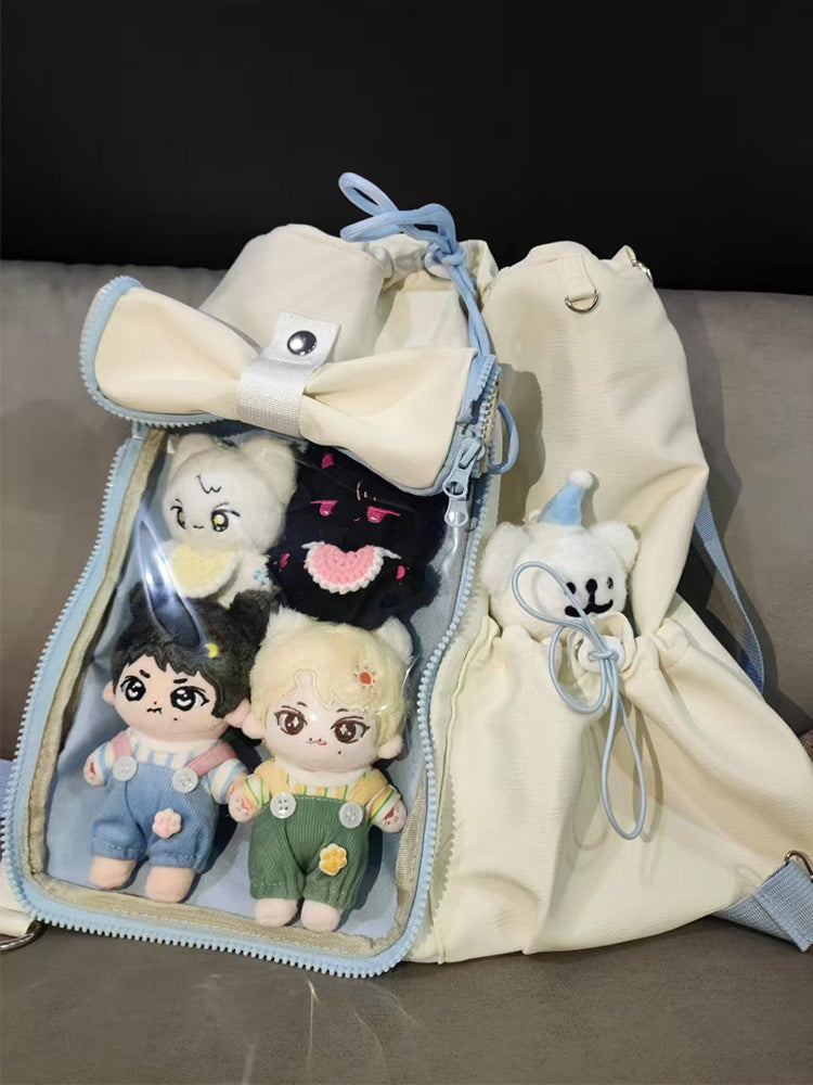 This super cute and uniquely designed ita bag is perfect for plushie lovers! Made from durable canvas with a clear PVC window, it’s roomy enough for books, making it great for school, shopping, or just showing off your favorite 20cm plushies. You can wear it as a shoulder bag or backpack — it’s versatile, stylish, and oh-so-adorable!
