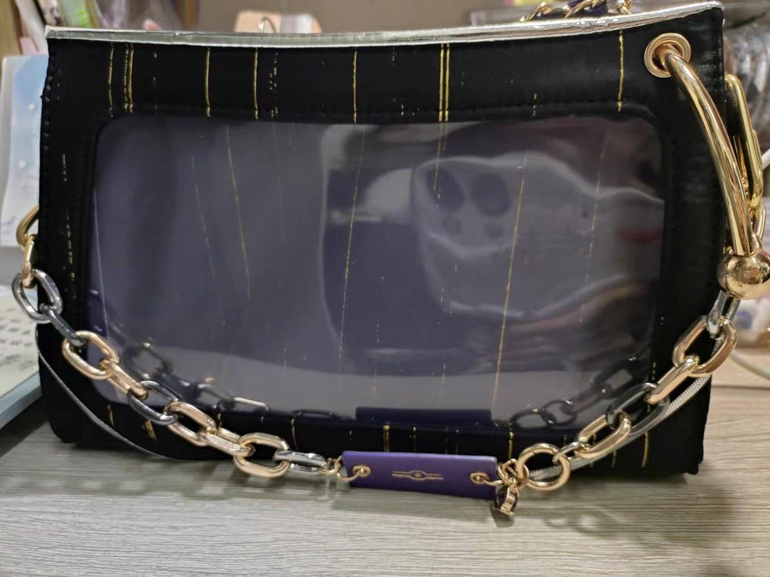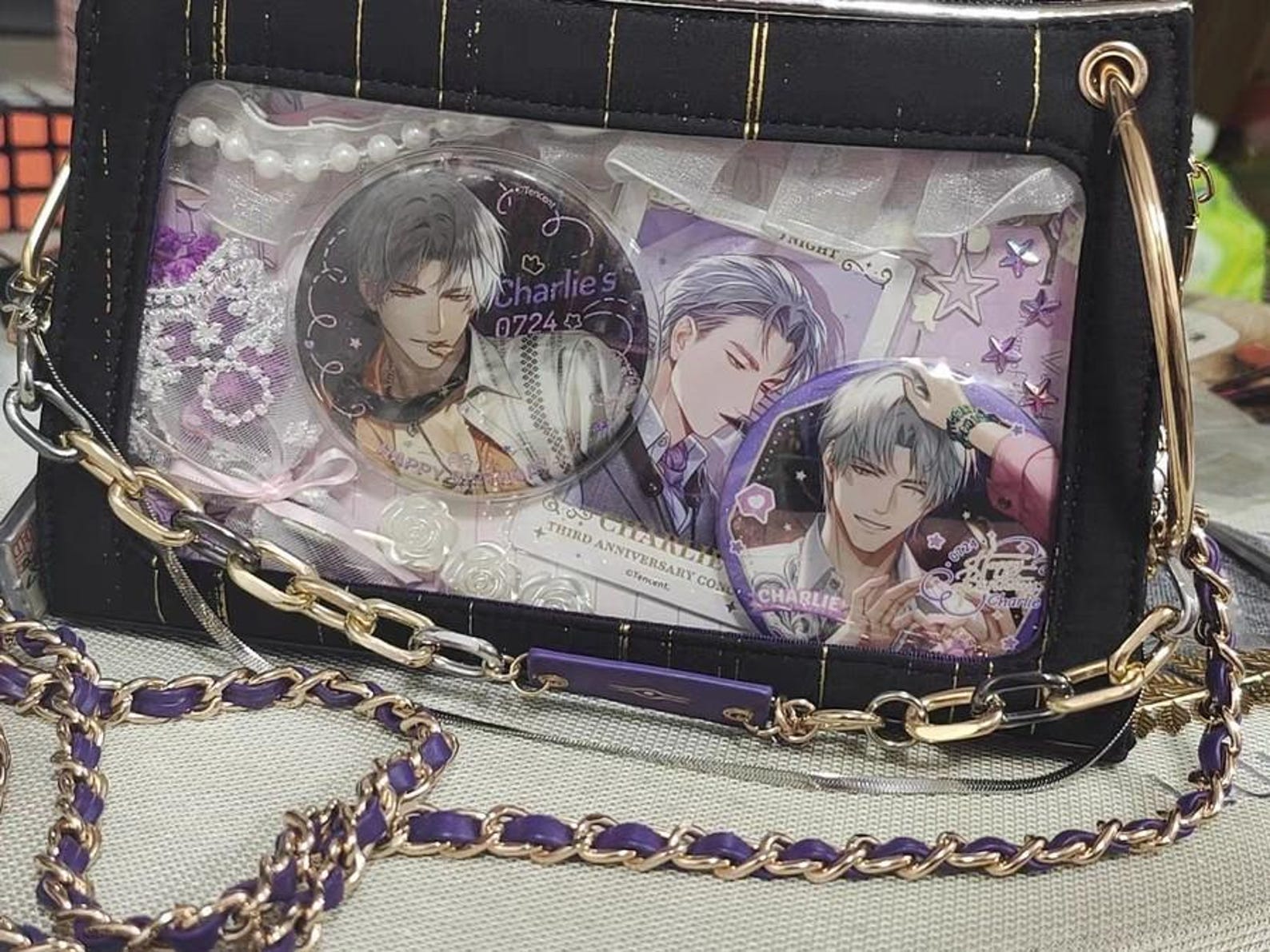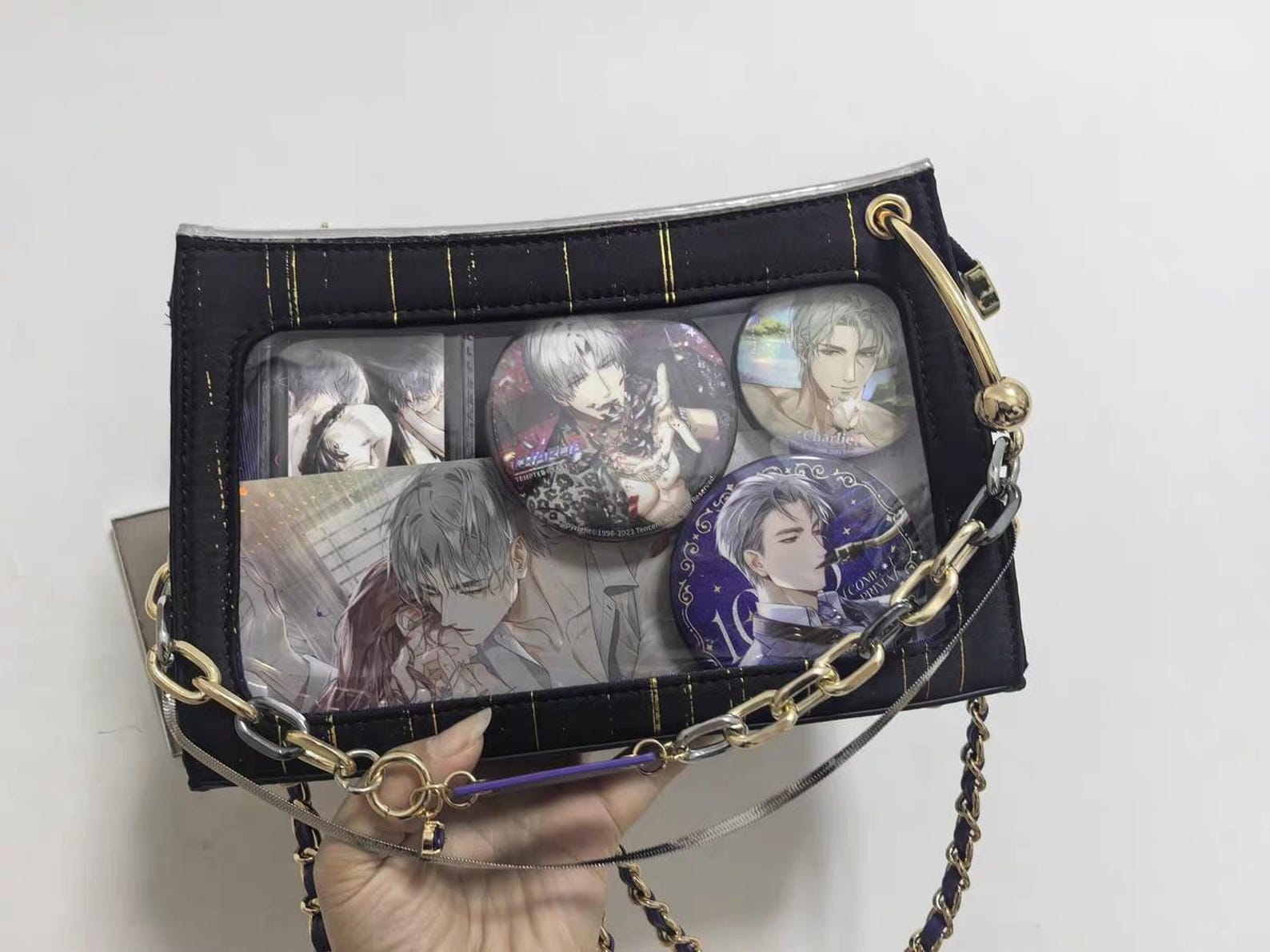 Show off your anime collection in style with this elegant black ita bag featuring gold accents and purple details. Designed for both functionality and fandom expression, it’s the perfect companion for conventions, daily use, or cosplay events.