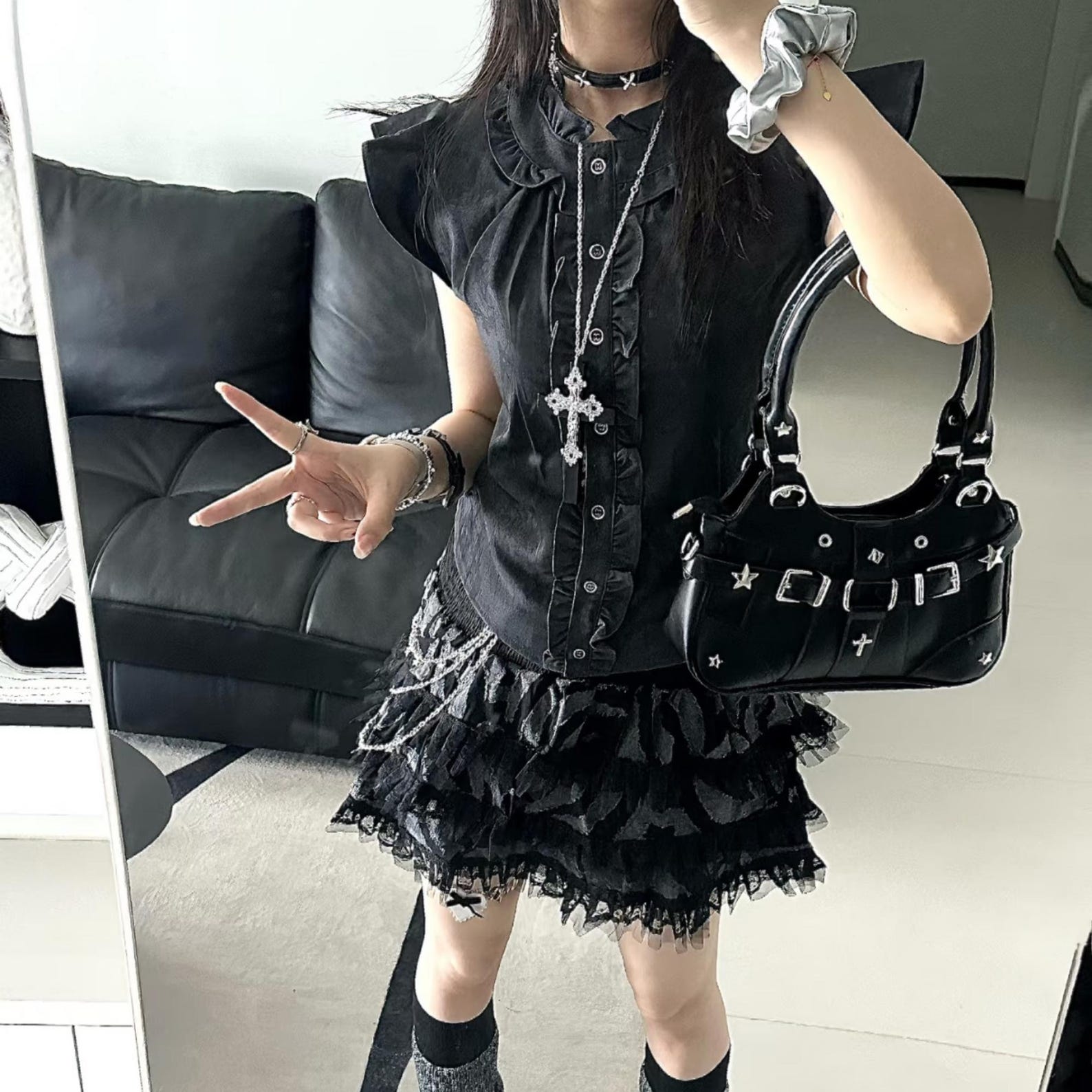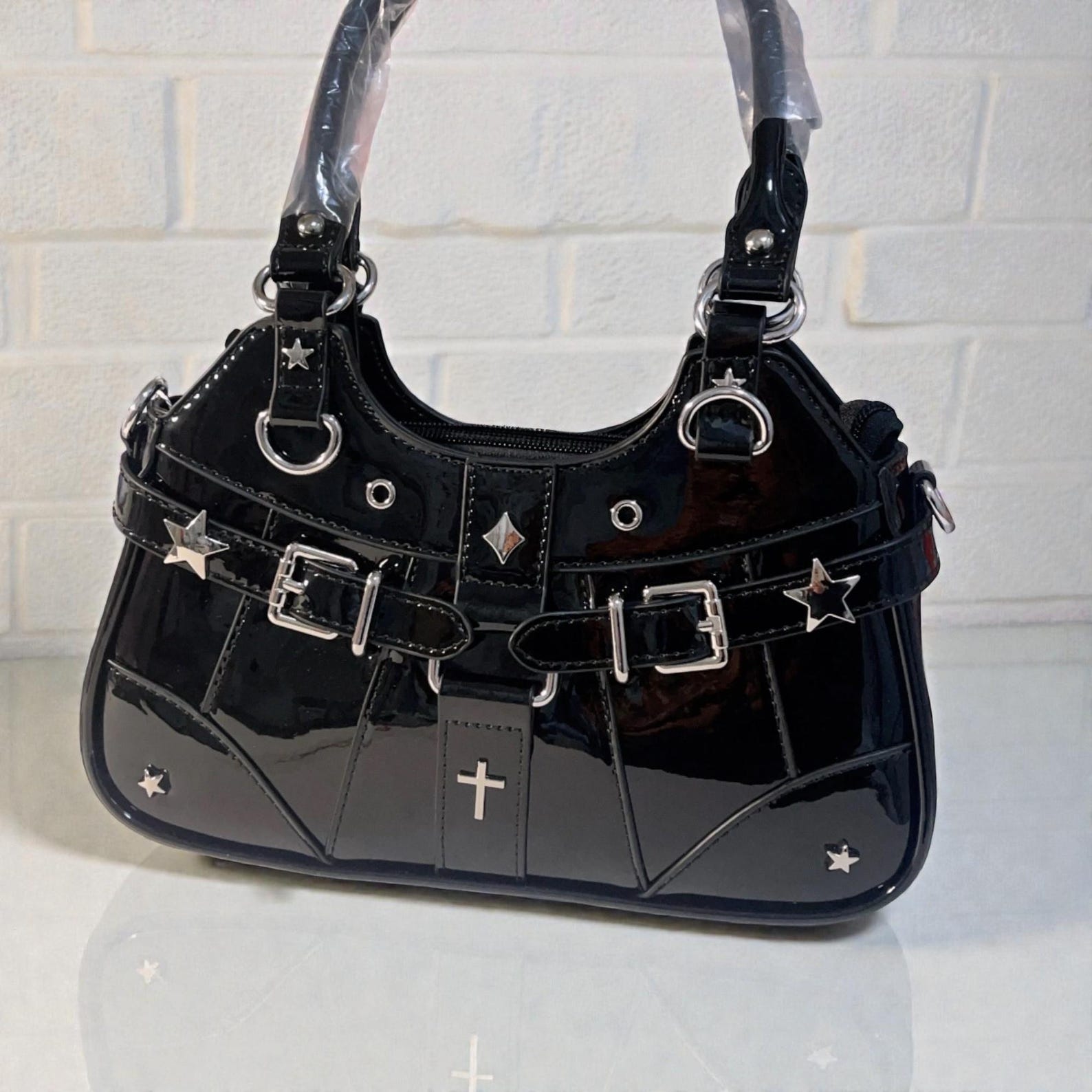 🖤: Featuring star-studded accents, metal hardware, and a sleek black finish, this punk purse adds the perfect touch of goth, grunge, and Y2K alt fashion.