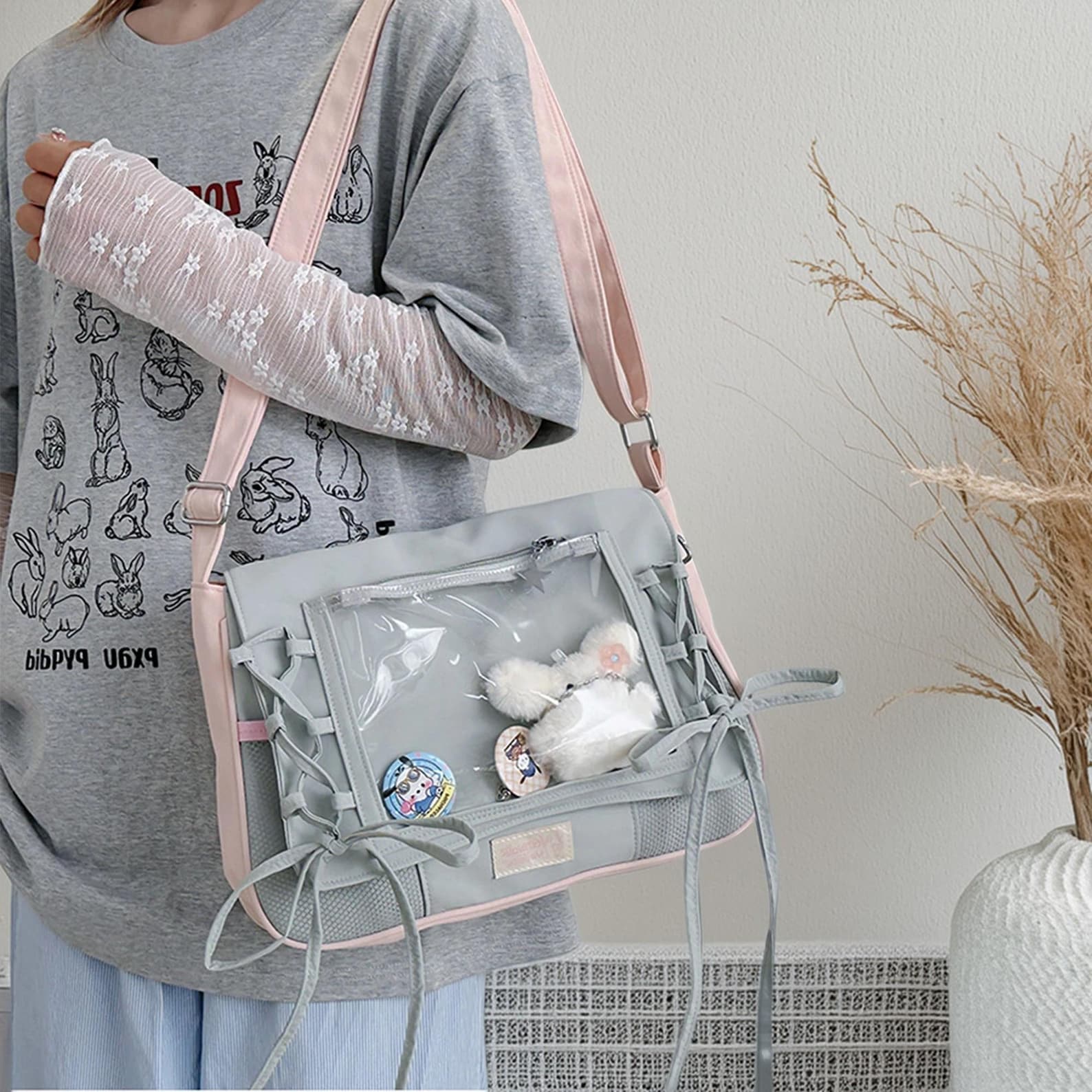 Bow-Knot Ita Bag, Personalized Pin Display Messenger Bag, Korean Japanese Preppy, Clear Window Bag, Ita Crossbody Bag, Anime Bag for Fans