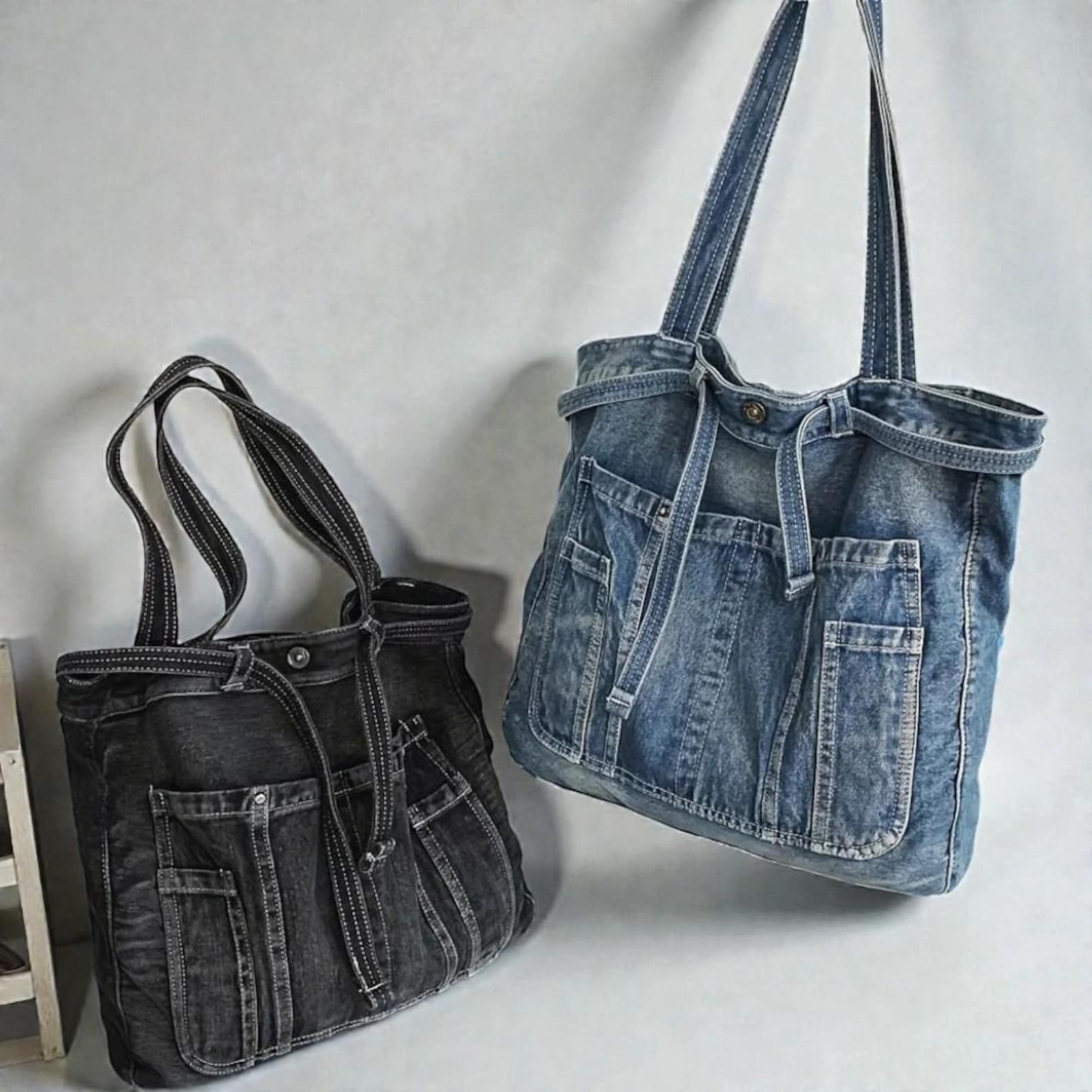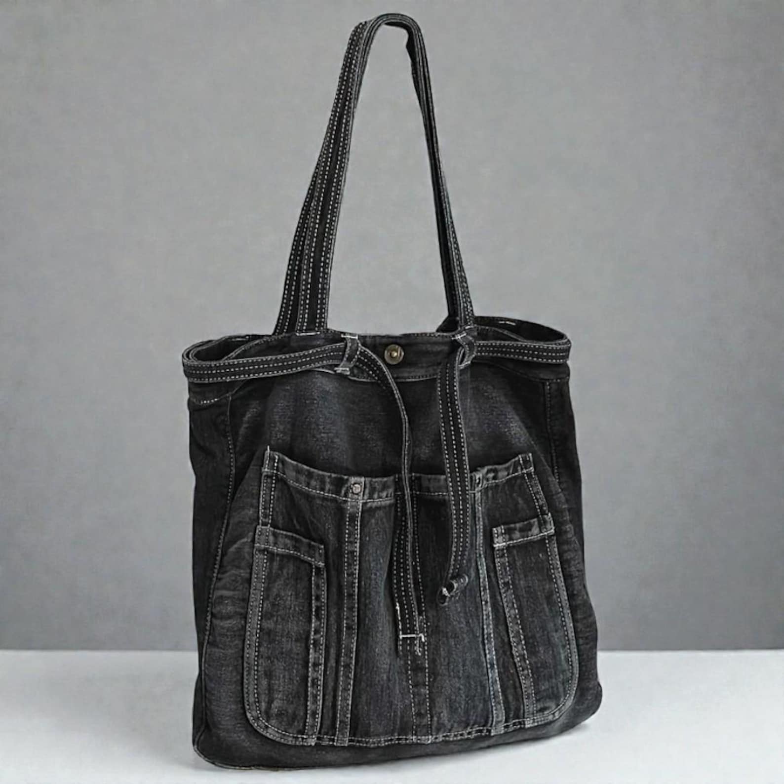 This casual denim tote bag is designed for everyday use with a stylish yet practical look. Made from durable denim fabric, it offers a large interior space perfect for work, school, shopping, or commuting. The simple snap closure keeps your essentials secure while allowing easy access.