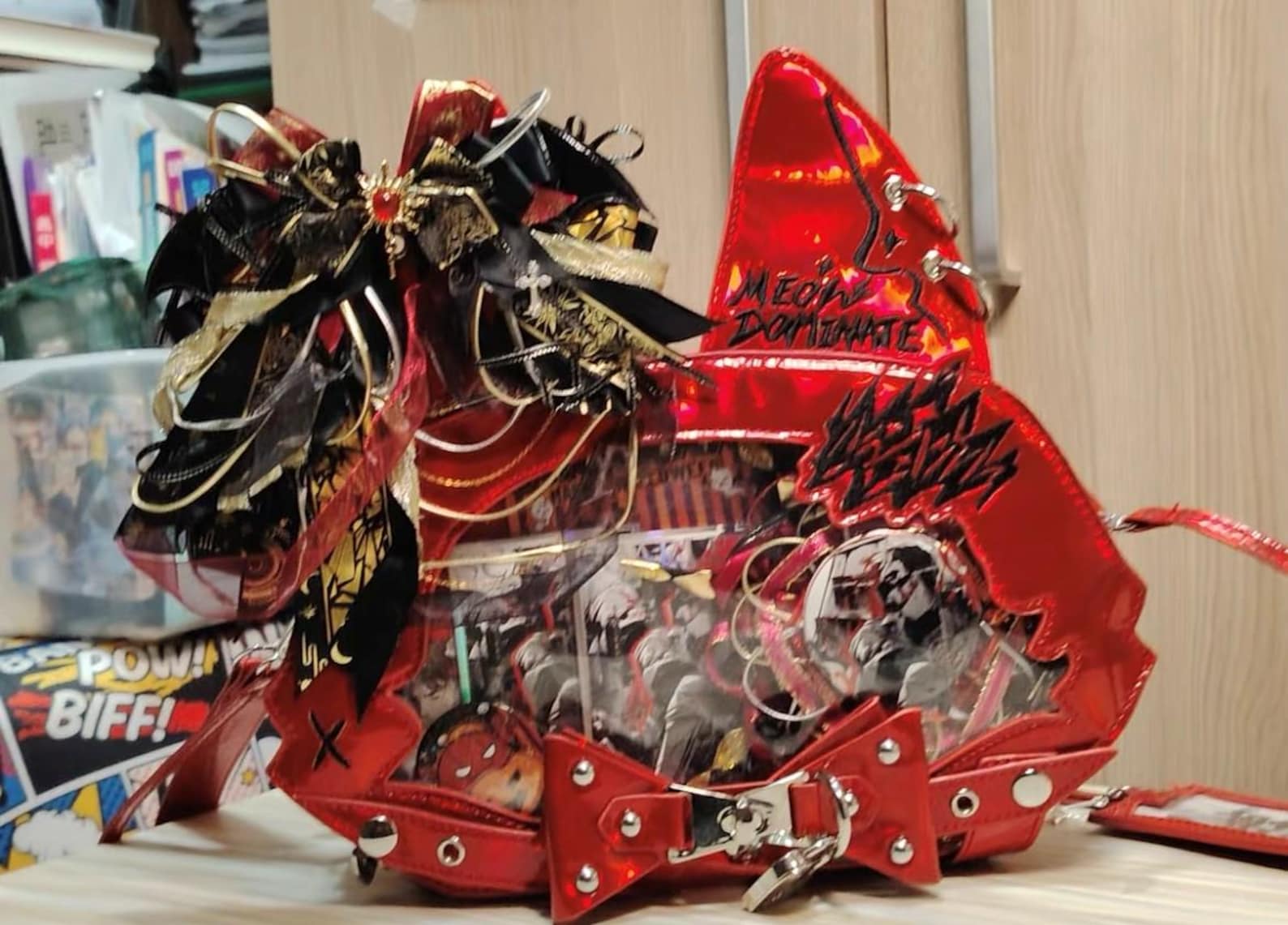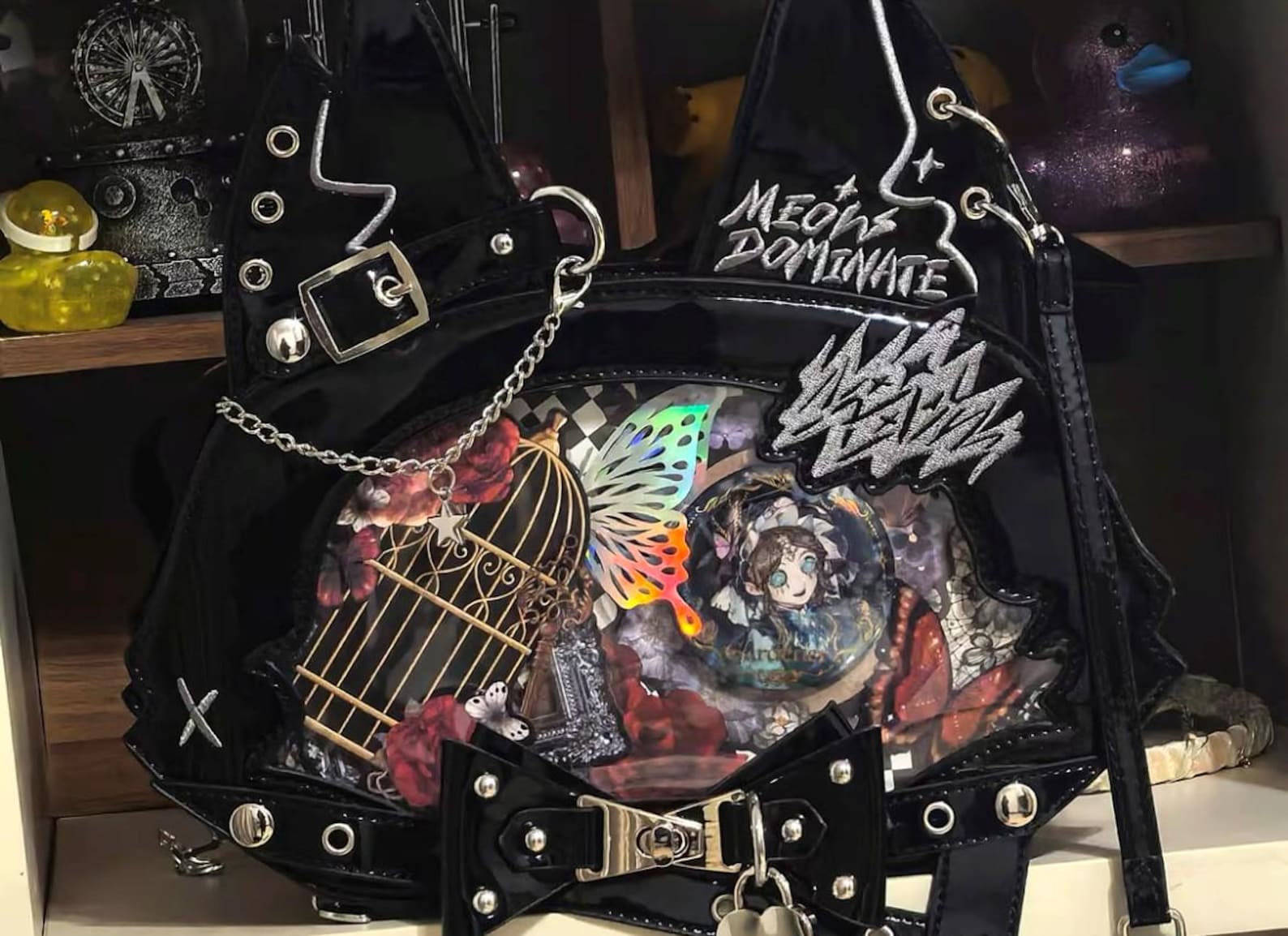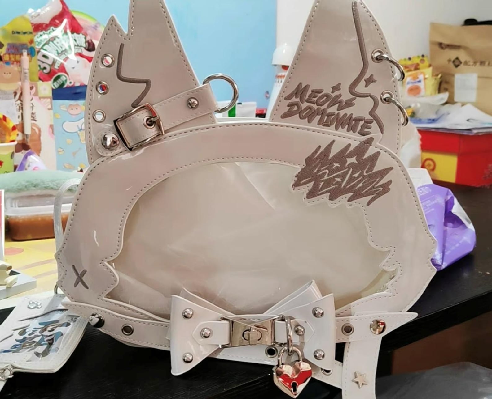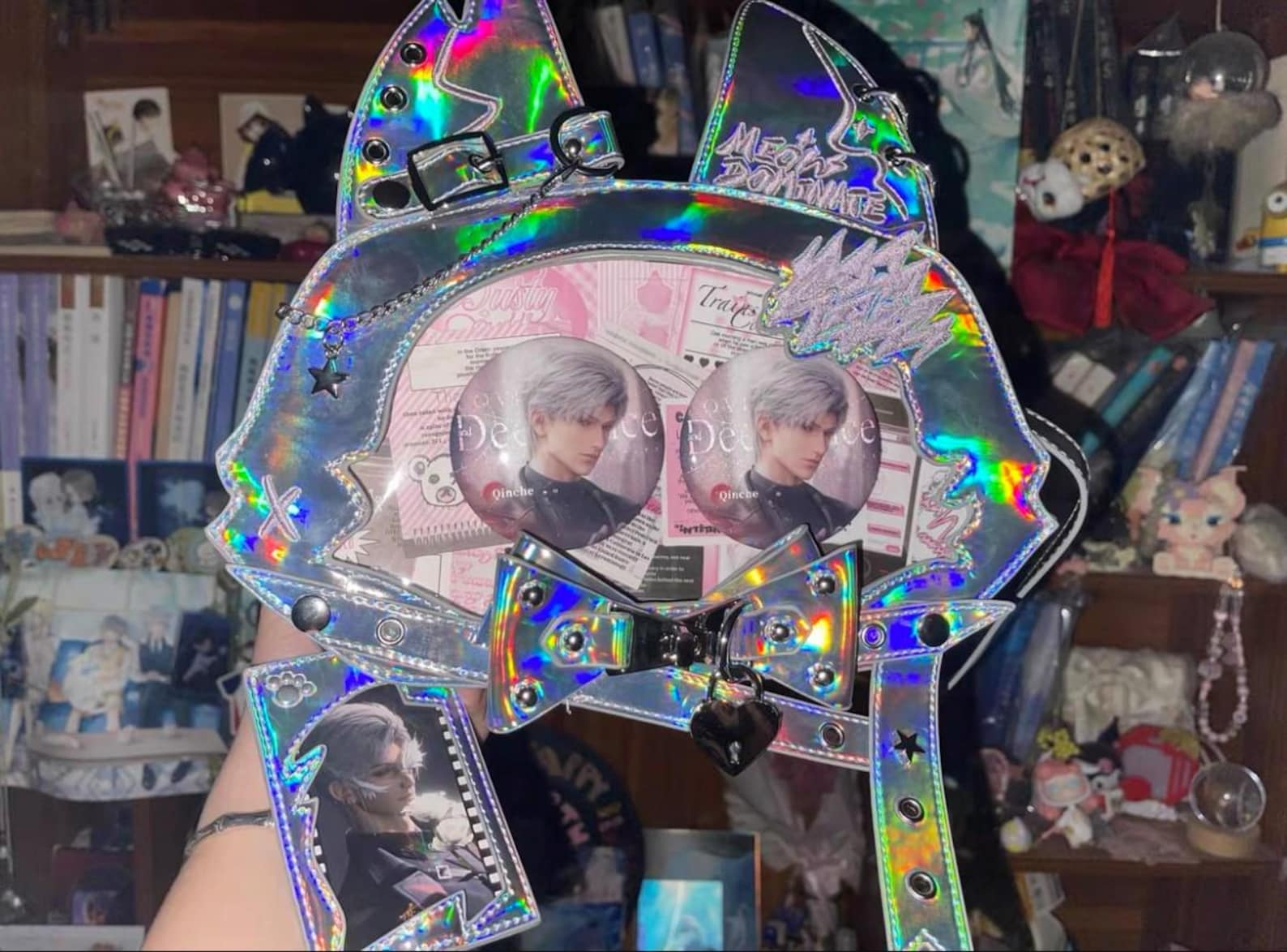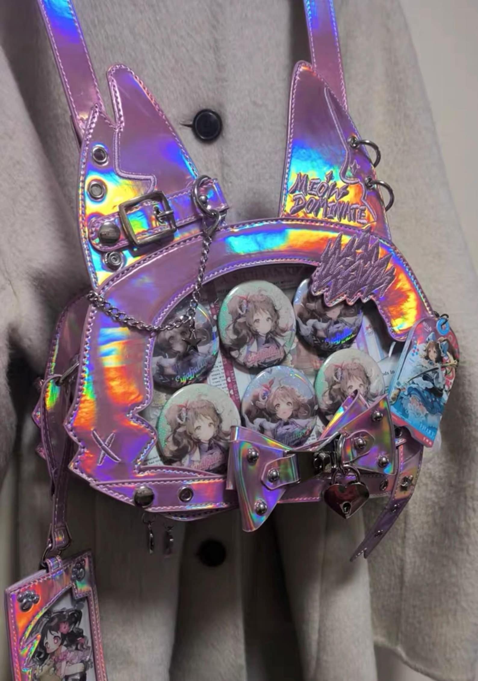 This cute and stylish cat-ear pain bag is perfect for displaying your favorite anime pins, badges, keychains, or postcards. Featuring a clear display window, it allows you to showcase your prized collectibles while making a bold fashion statement. The high-quality PU leather ensures durability, while the rounded, compact silhouette adds a playful touch to your wardrobe. Whether you're displaying plush collections, celebrating holidays, or embracing kawaii fashion, this bag is the ideal choice for fans of personalized otaku style.