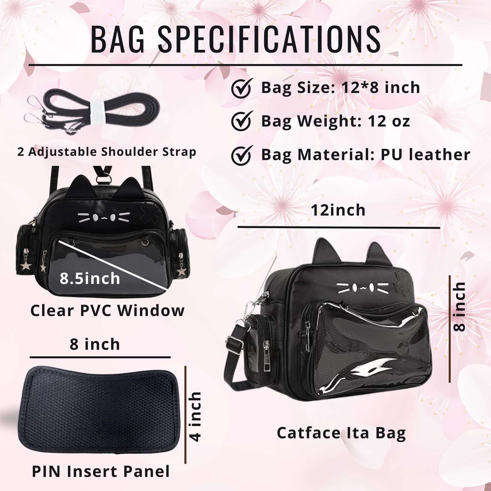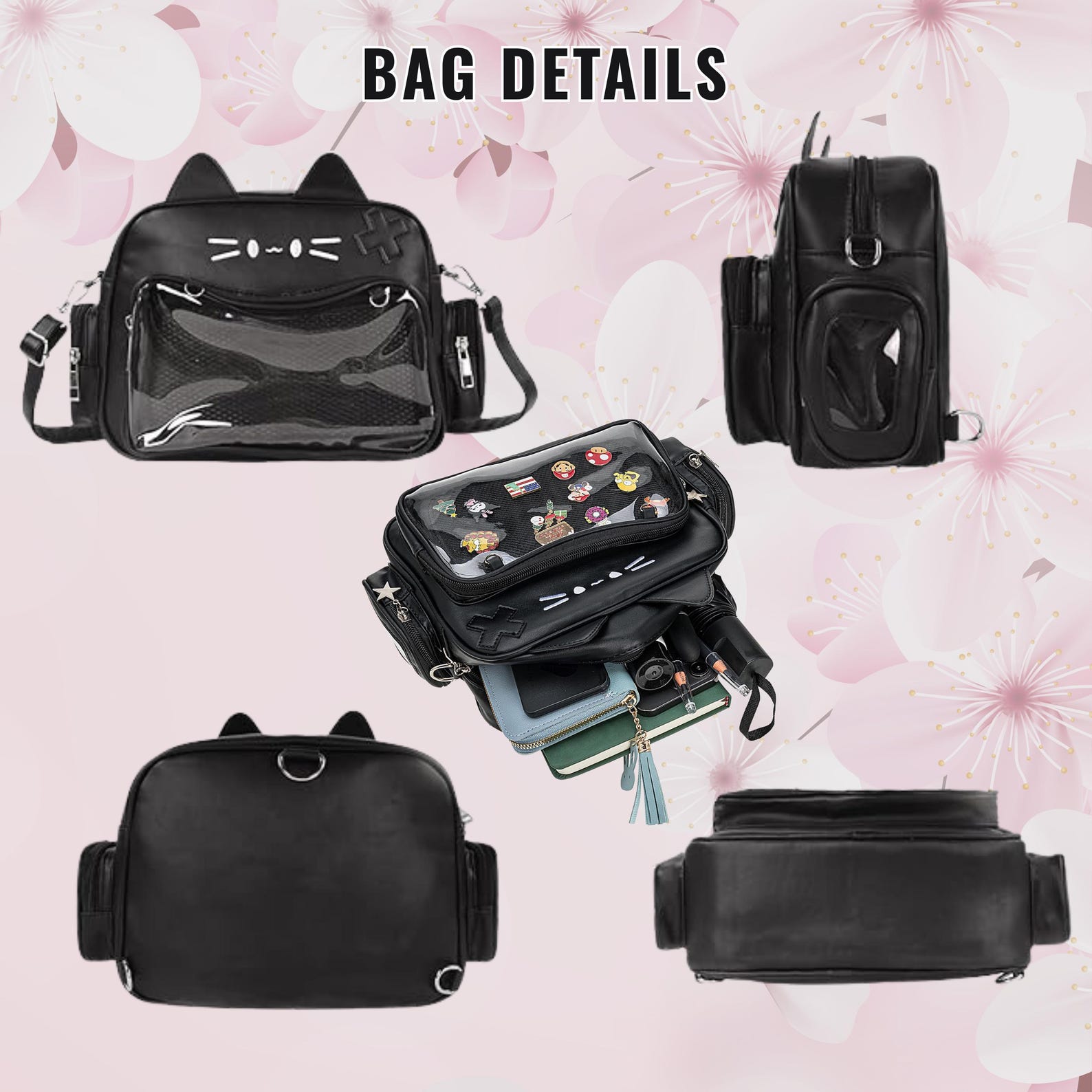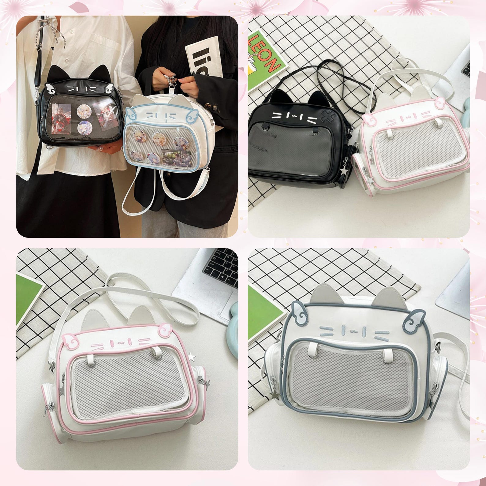 Catface ita bag & backpack, plush ita backpack, crossbody ita bag, kawaii ITA bag, enamel pin ita bag, anime convention ita bag