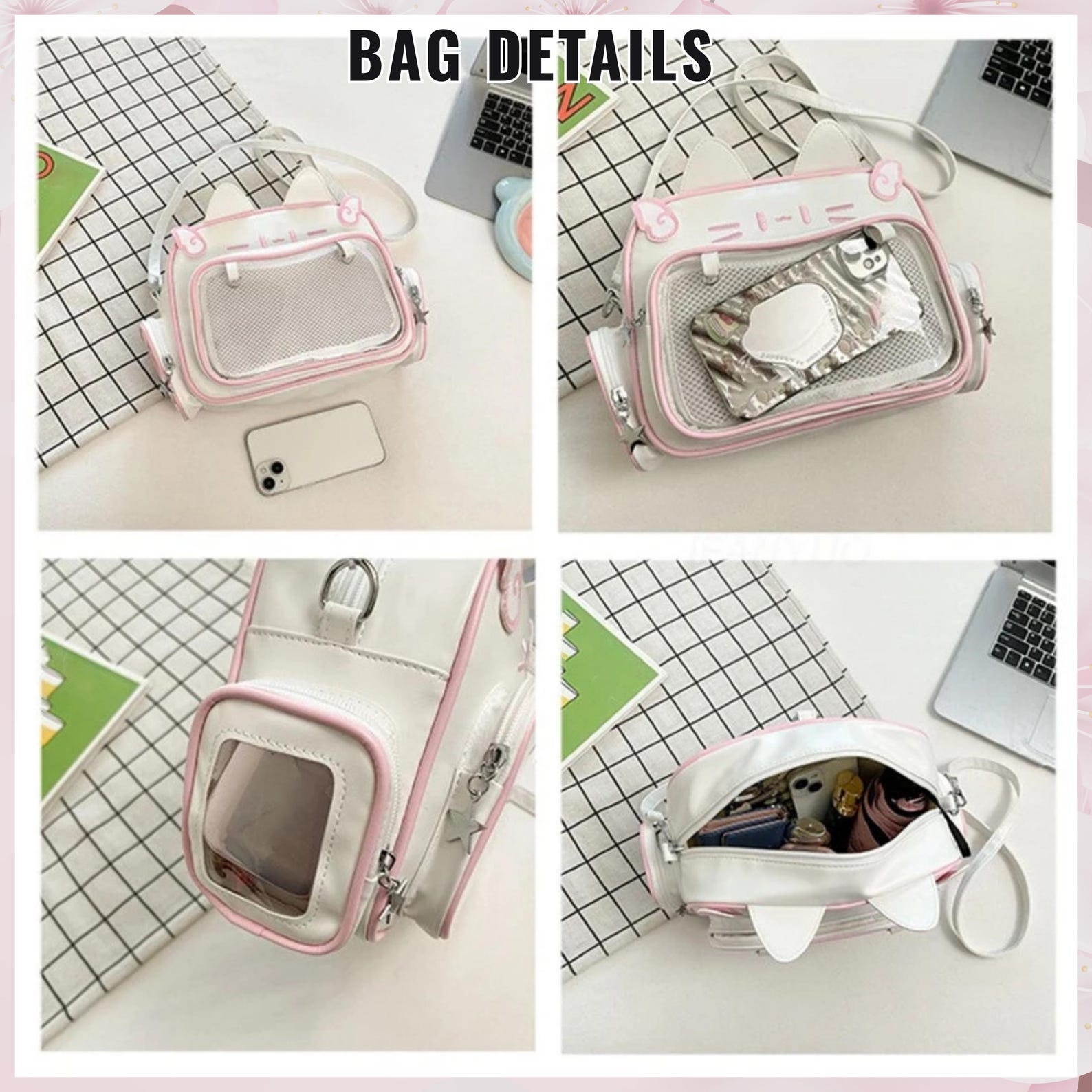 Carry your favorite pins and charms in the cutest way possible with this Catface Ita Bag! Soft, cuddly, and functional, this ita bag doubles as both a crossbody bag and a backpack thanks to its adjustable straps. The plush cat design makes it extra adorable, while the clear PVC display window keeps your pins and keychains safe yet visible.