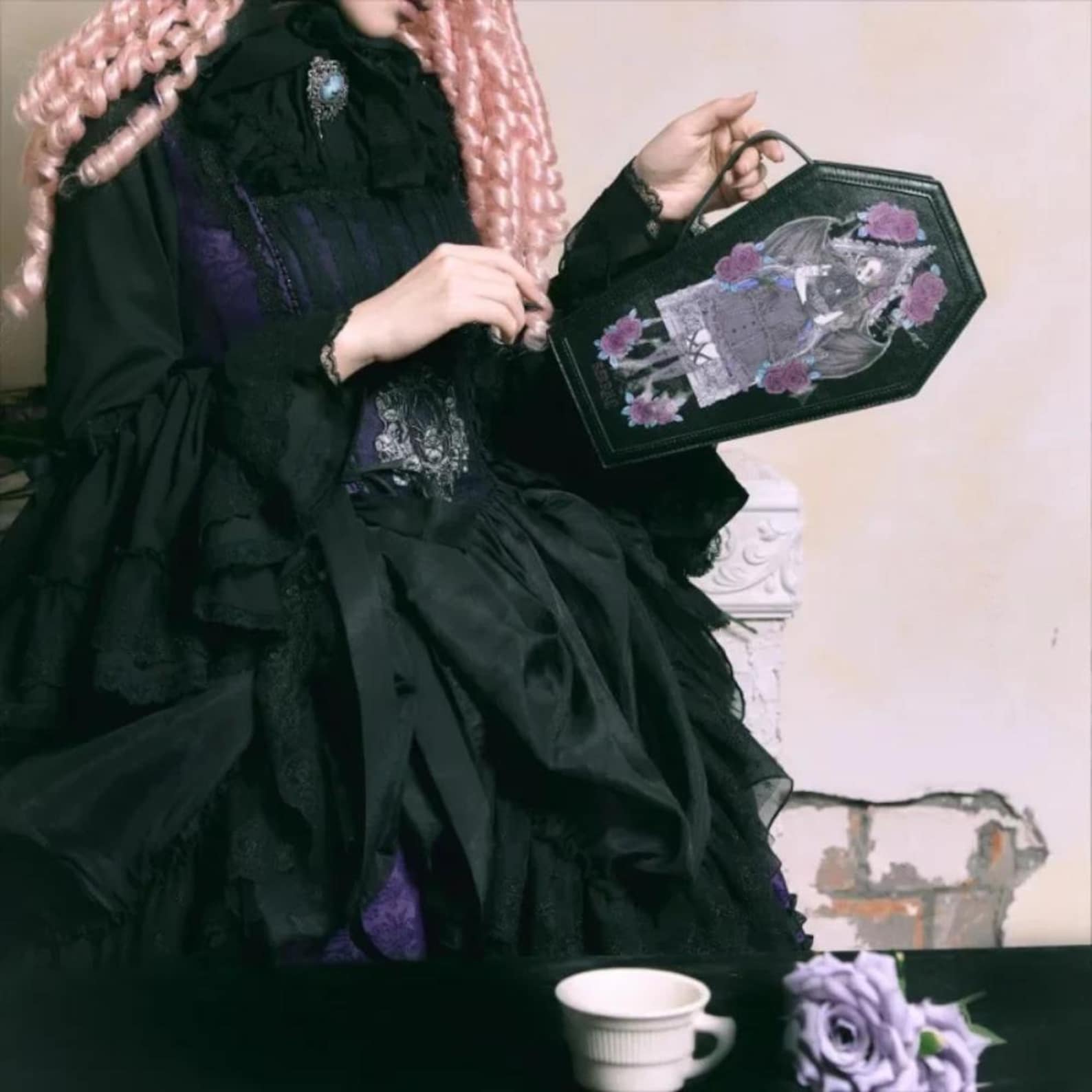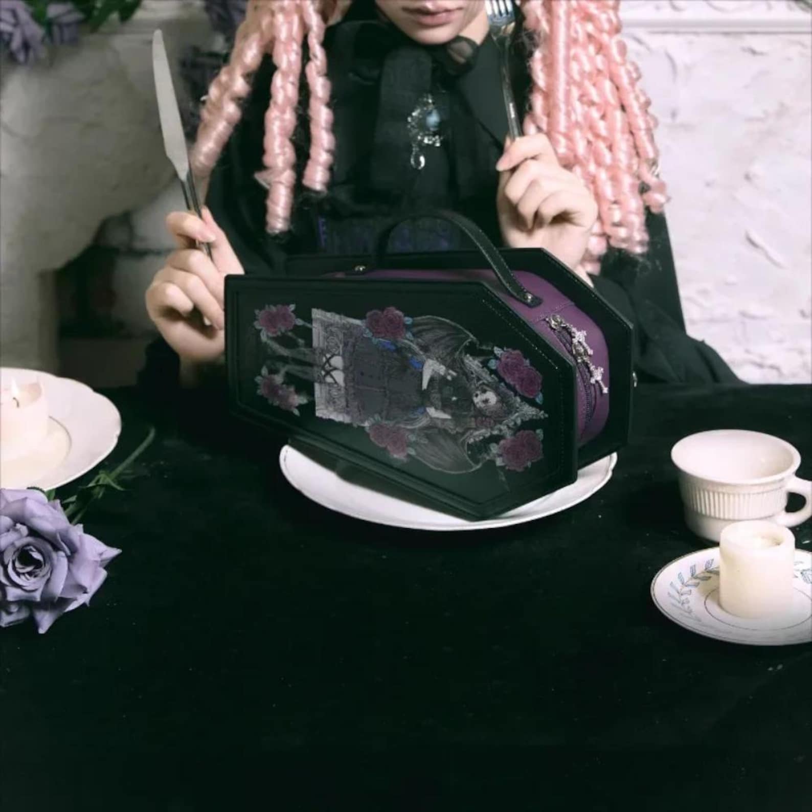 Coffin Ita Backpack – Gothic Lolita PU Dark Print Halloween Crossbody & Shoulder Bag for Women