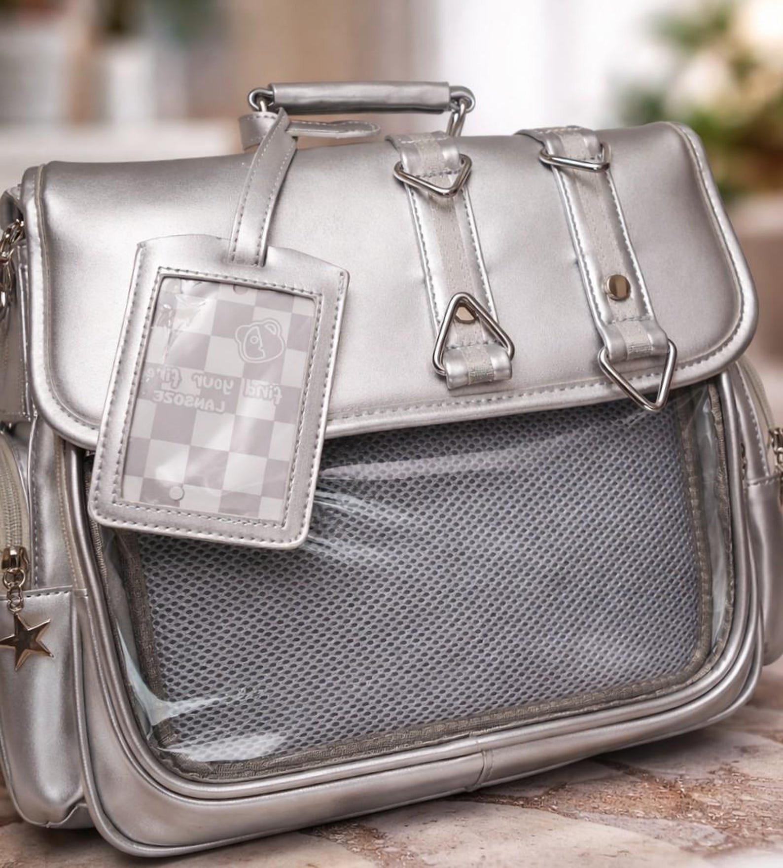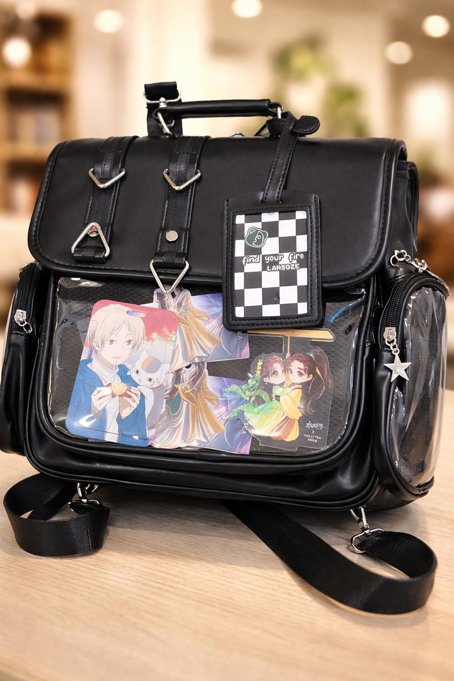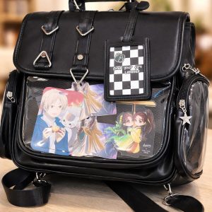 Convertible Ita Backpack and Crossbody Bag with Clear Window – Bag for Anime Pins, Badges and Keychains | Gift for Cosplayers & Collectors