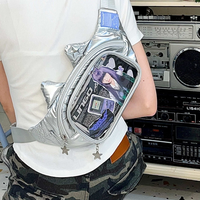 This super cute cat-shaped chest bag features a transparent display window, perfect for showcasing your favorite badges, cards, or plushies. A stylish and practical choice for daily commuting!