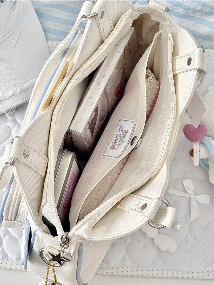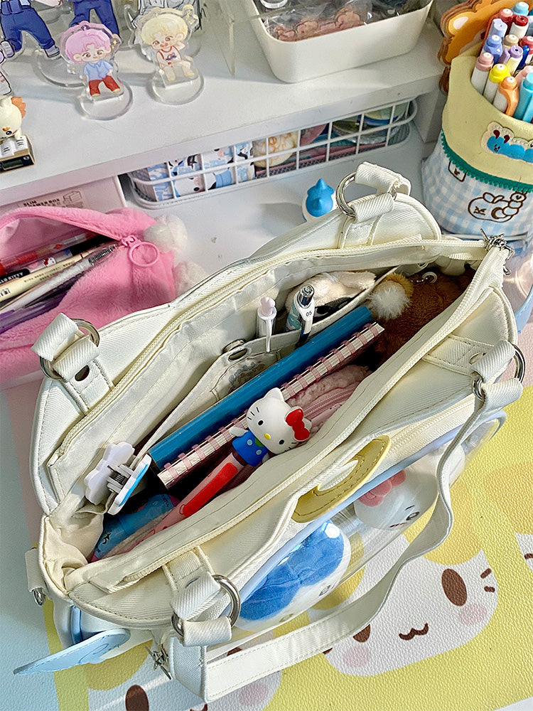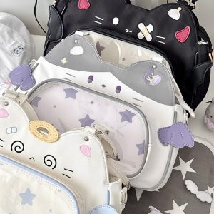 This ita bag features three unique and charming cat designs: the aloof Witch Cat, the rebellious Demon Cat, and the sweet Angel Cat. Each cat has a distinct personality, making the bag playful and full of character.