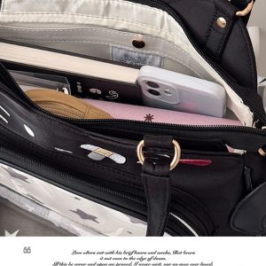 The cat wings and bag edges are made of PU leather, giving the bag a premium textured look. Inside, there’s a hidden magnetic snap closure for keeping small essentials secure and easy to access.