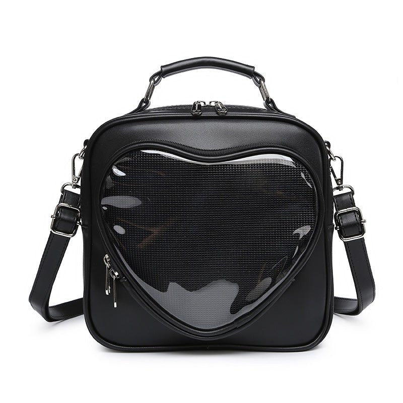 This leather ita bag can be carried in hand , used as a backpack or crossbody with the long shoulder strap . Each backpack features adjustable straps and is made out of leather material which makes it super easy to clean off . These bags are suitable for women or teenagers . The most important point is that the heart shape design on the bag makes you look young and lovely.