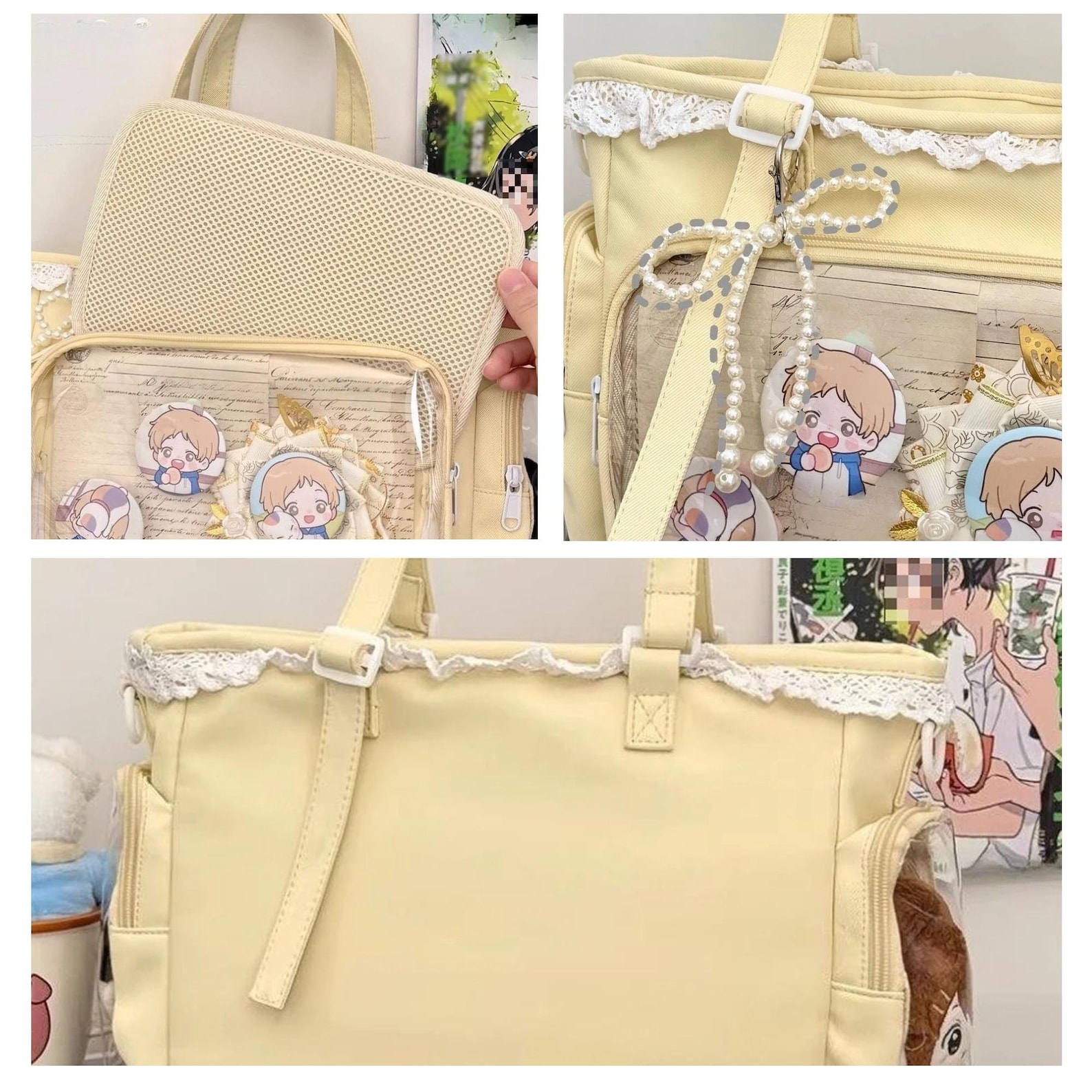 Cute Ita Bag with Insert Board, Personalized Clear Window Bag, Pin Display Bag, Crossbody Tote for Anime Pins, Cosplay Collectibles Gift
