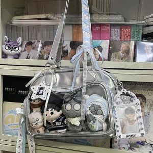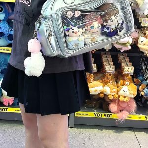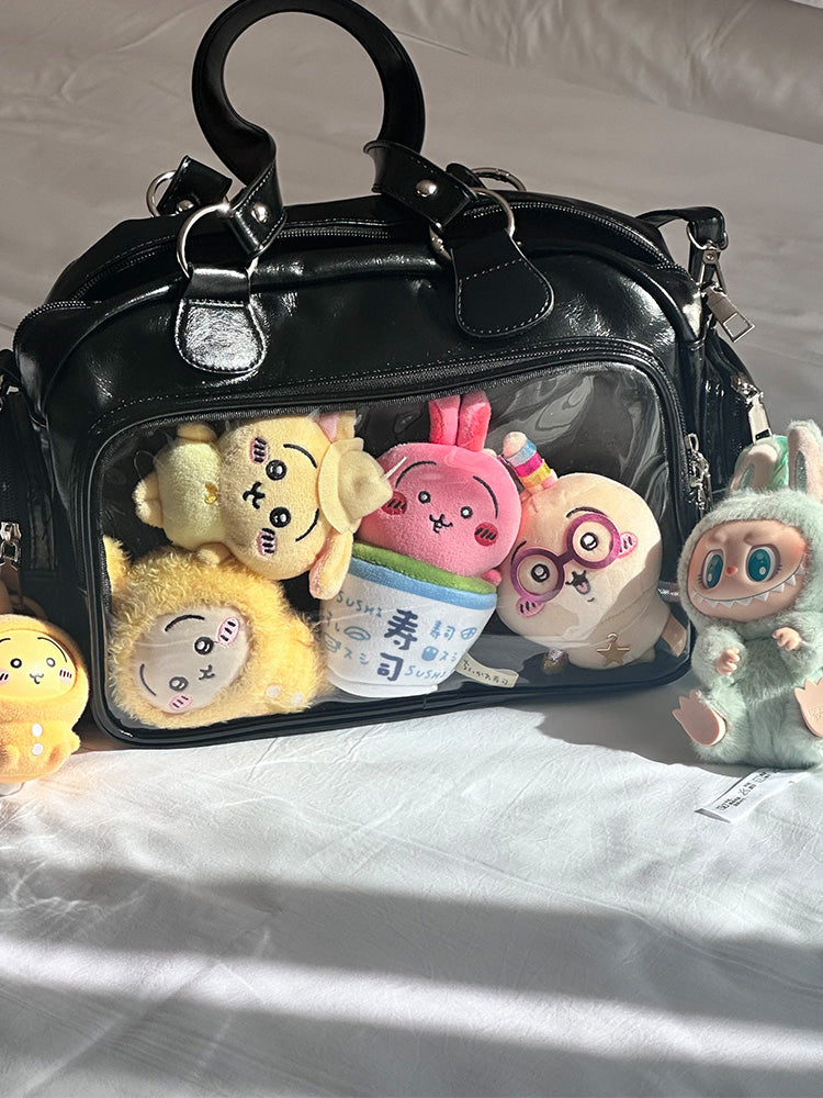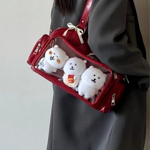 This adorable ita bag is perfect for JK-style fans and plushie collectors! The soft PU leather and lightweight build make it comfortable to carry all day, whether you’re heading to school, conventions, or hanging out with friends. The spacious display window lets you show off your favorite pins or dolls in style!