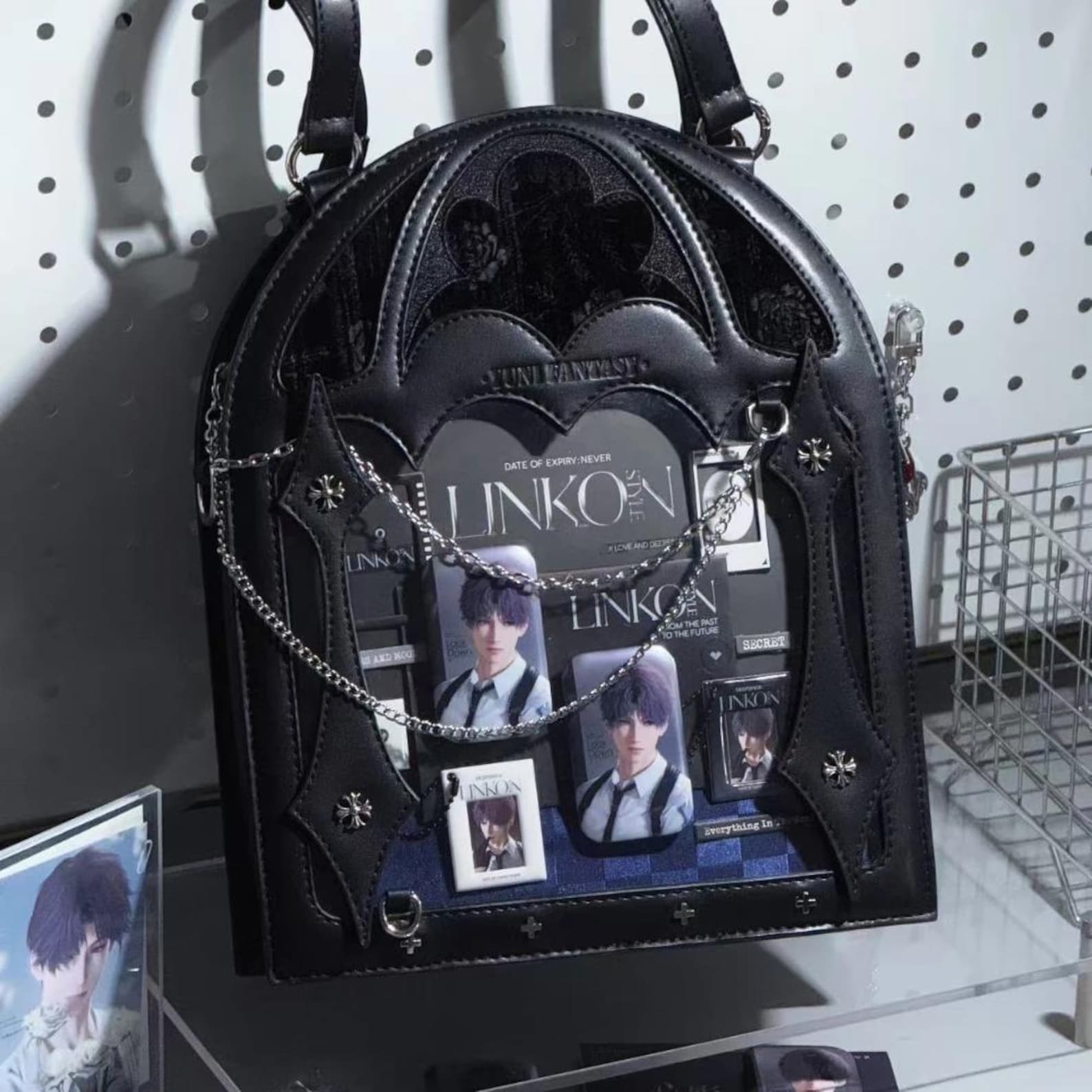 This Dark Halloween Lolita Ita Bag is the perfect mix of gothic elegance and kawaii charm. Featuring a transparent display pocket and compact gothic design, it’s ideal for carrying small essentials while showing off pins, charms, or accessories.