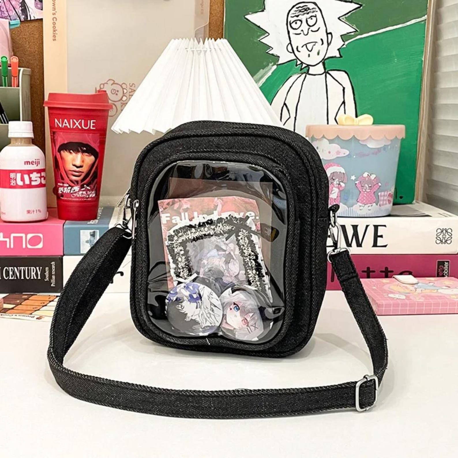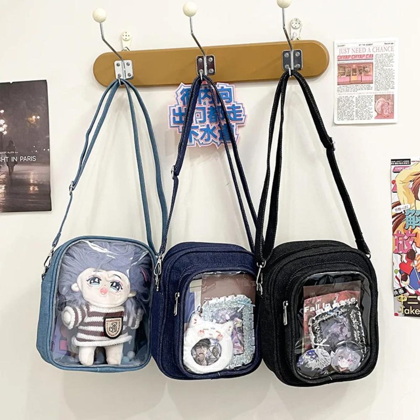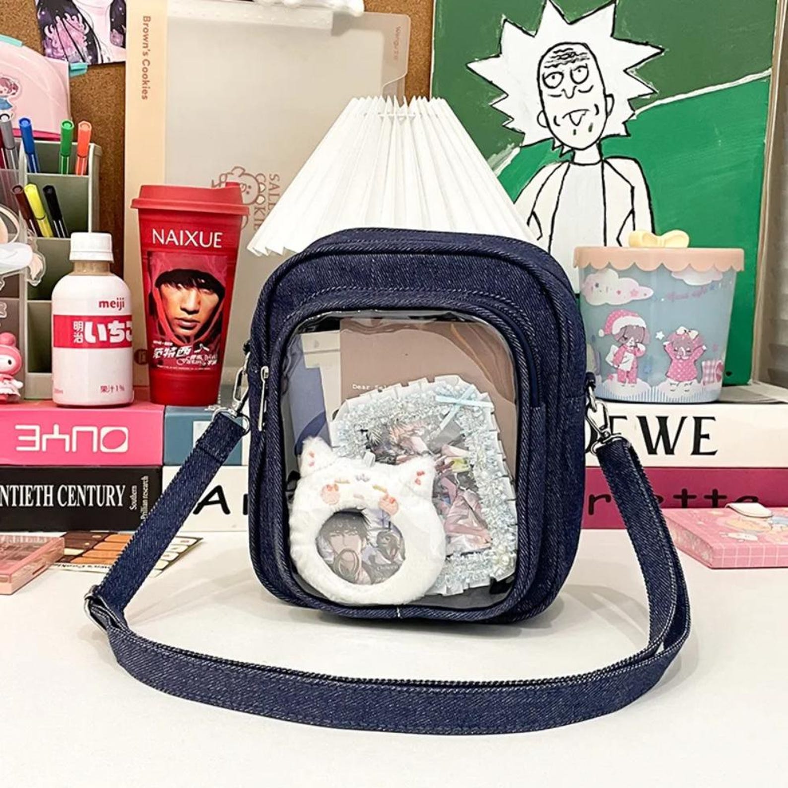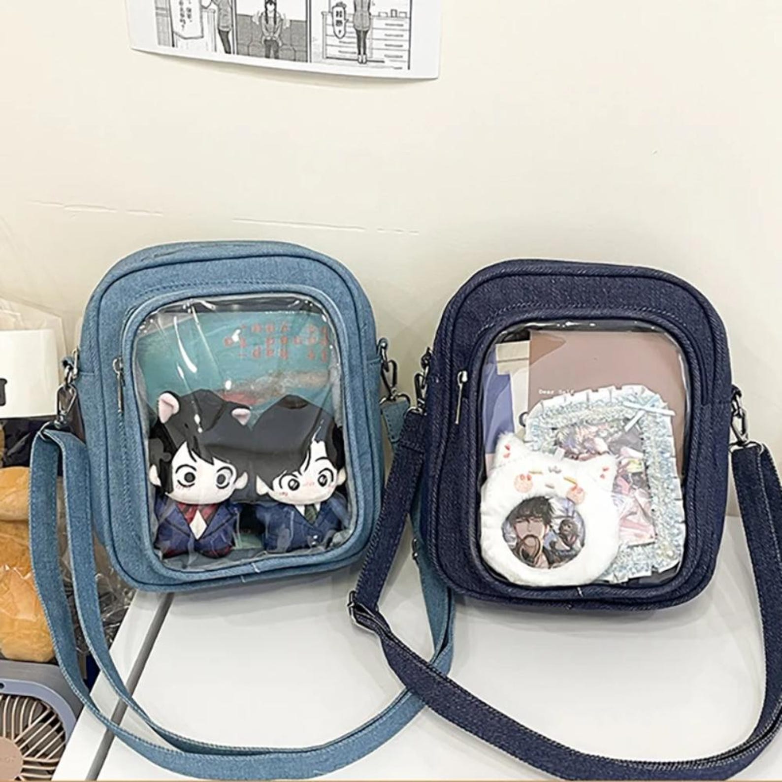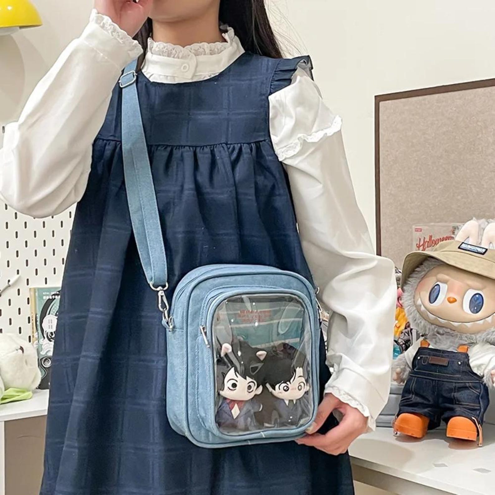 This Denim Mini Ita Bag is a fashionable and practical accessory for women and anime fans who love individuality. Featuring a 2-sided transparent display pocket, it’s perfect for showcasing your pins, badges, charms, or dolls while carrying daily essentials.