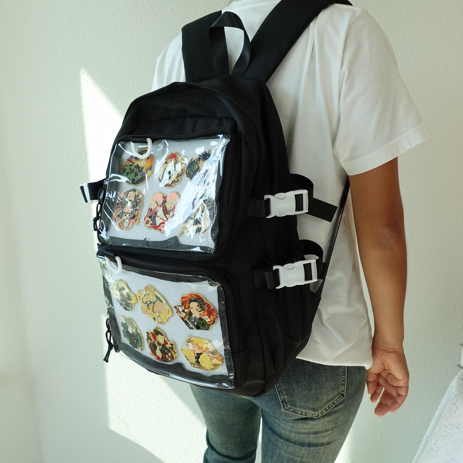 This Large Kawaii Ita Backpack Holds 2 inserts for double the display space.