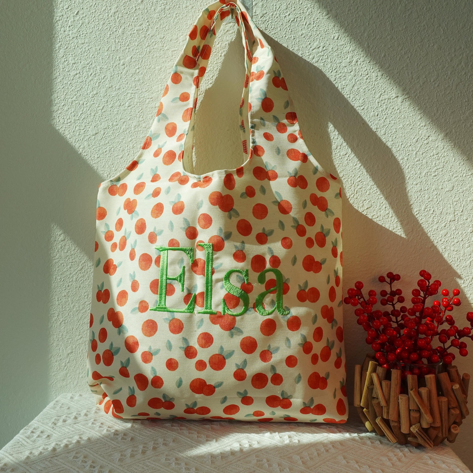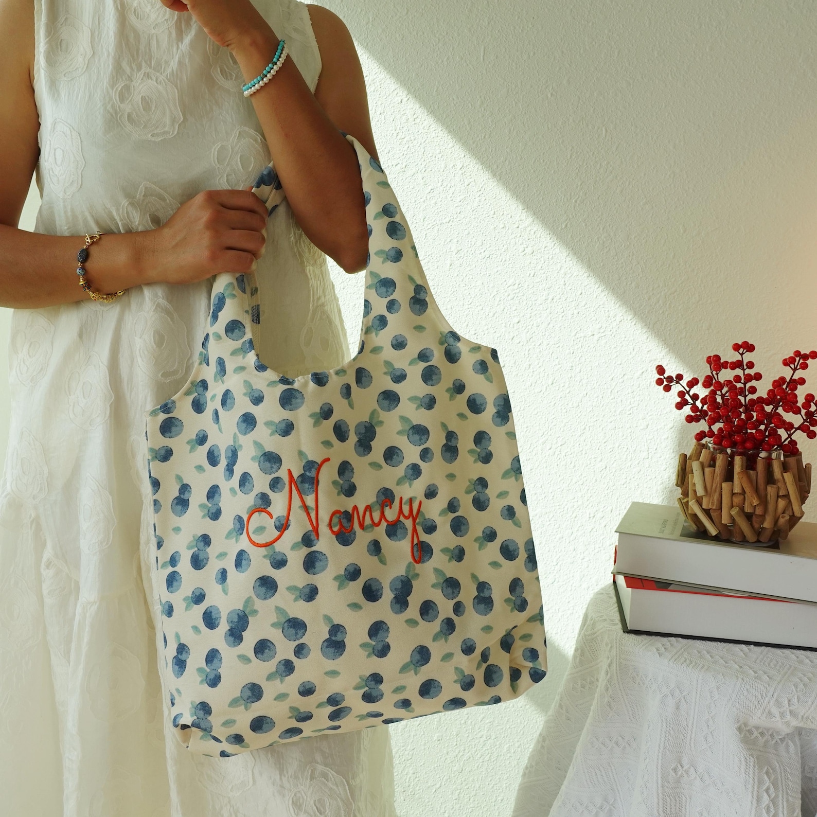 These totes are not only practical but also aesthetic and stylish, making them a wonderful gift for her, a thoughtful bridesmaid tote bag, or even a unique bride tote bag for wedding preparations. Whether you prefer a cute totebag with floral embroidery, a playful blueberry design, or a citrus-inspired orange bag, you’ll find a design that fits your style.