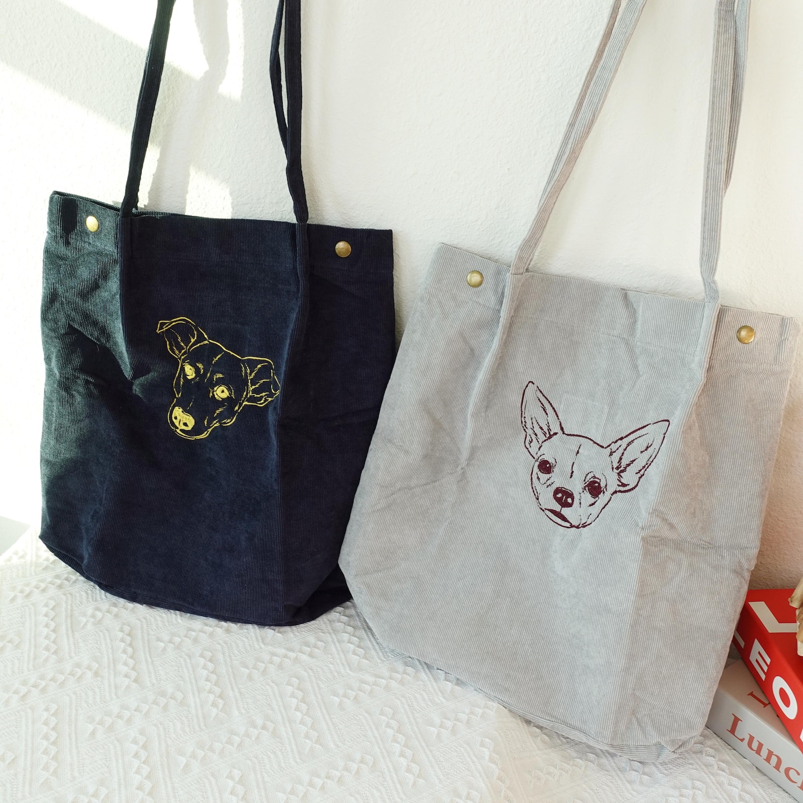 Custom Portraits: Our exquisite craftsmanship transforms your cherished photos into finely embroidered portraits, adding a unique touch to your tote bag.