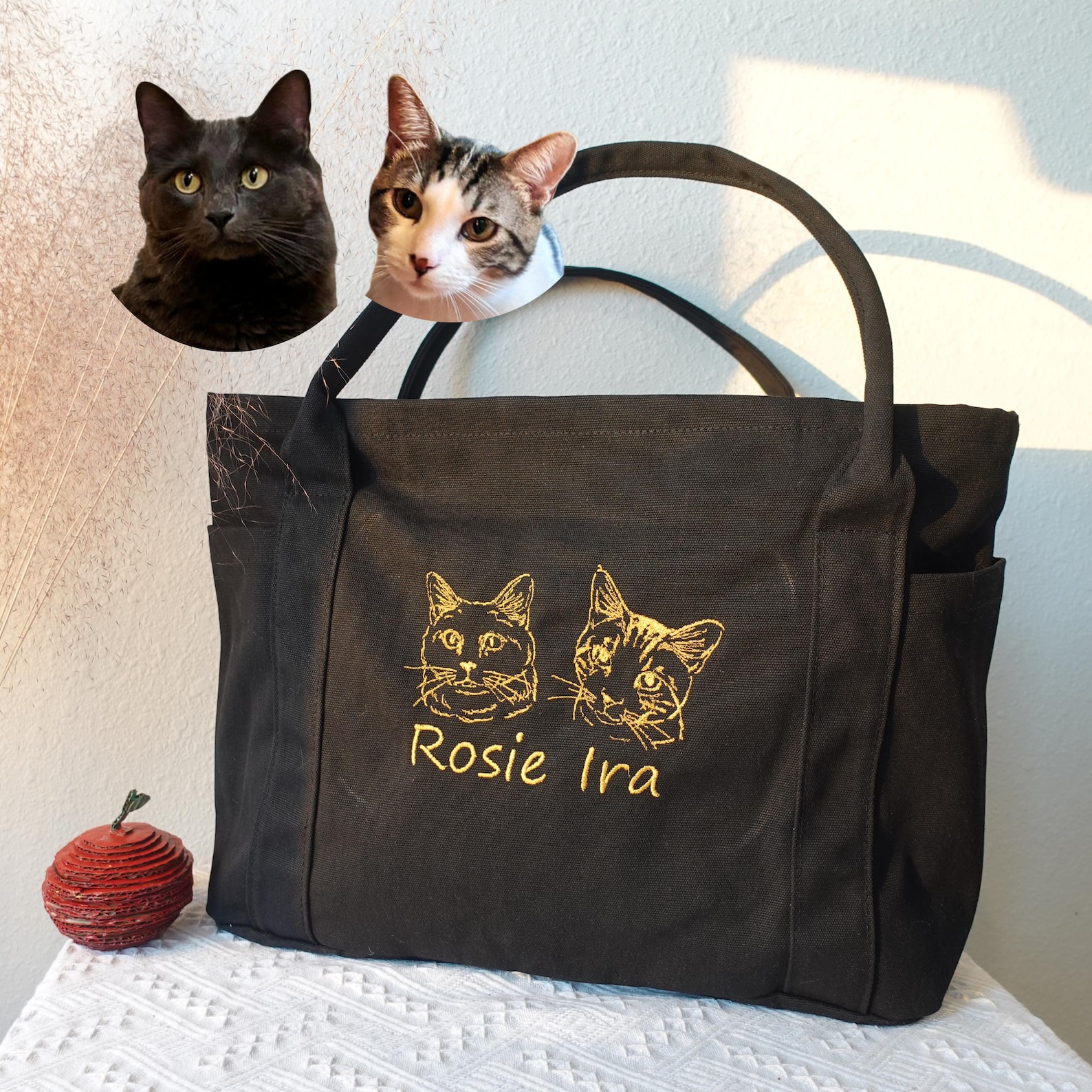 Custom Portraits: Our exquisite craftsmanship transforms your cherished photos into finely embroidered portraits, adding a unique touch to your tote bag.