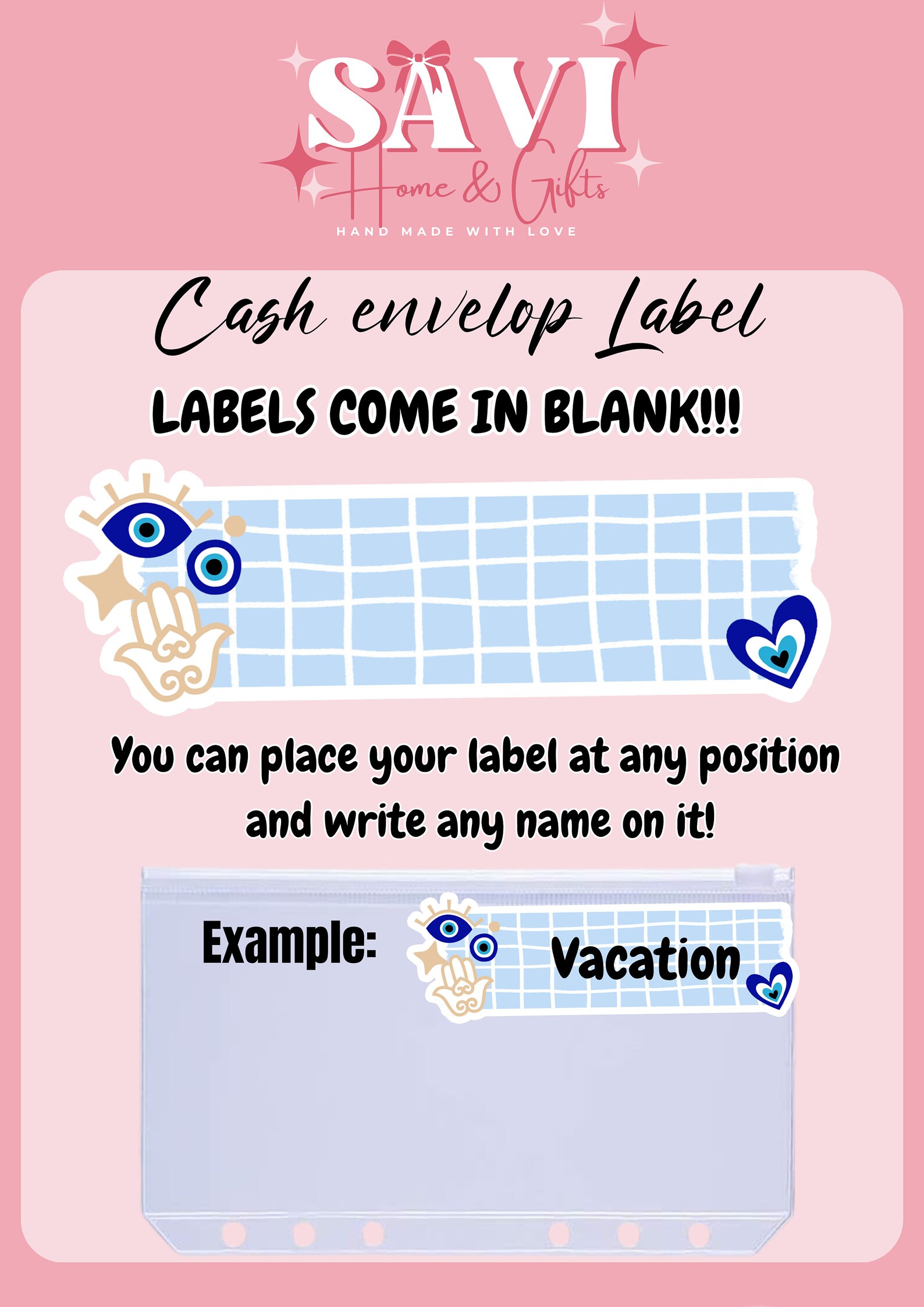 – Matching Label for each cash envelop ( not attached on the cash envelope)