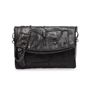 Bellissima borsa in pelle nera con catena! La misura è perfetta per tutto quello che occorre: telefono, portafoglio e altro! Davvero originale con i piccoli teschi! Venditore consigliato e prezzo imbattibile! La adoro!