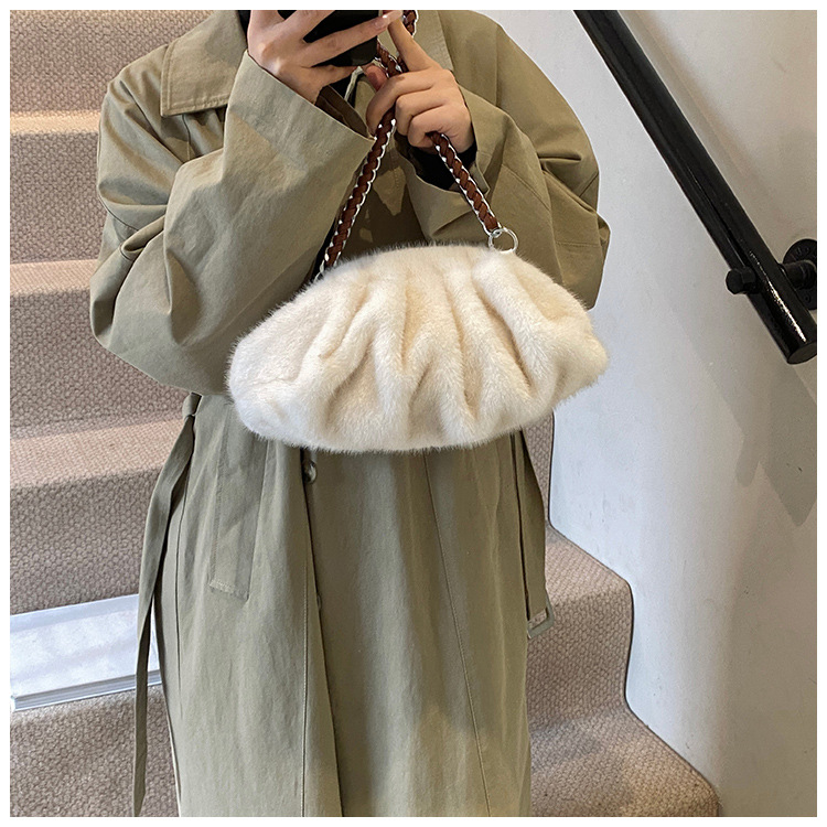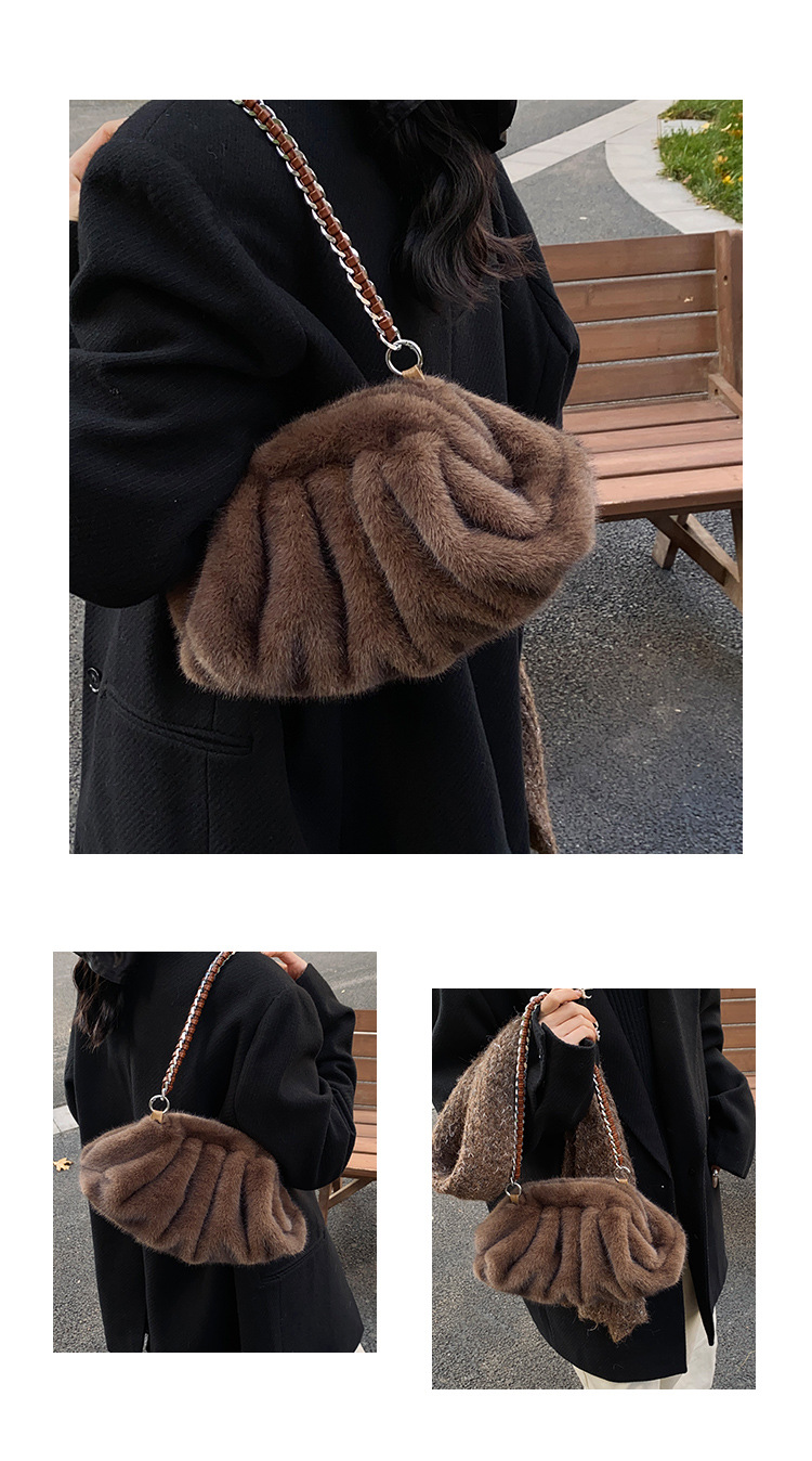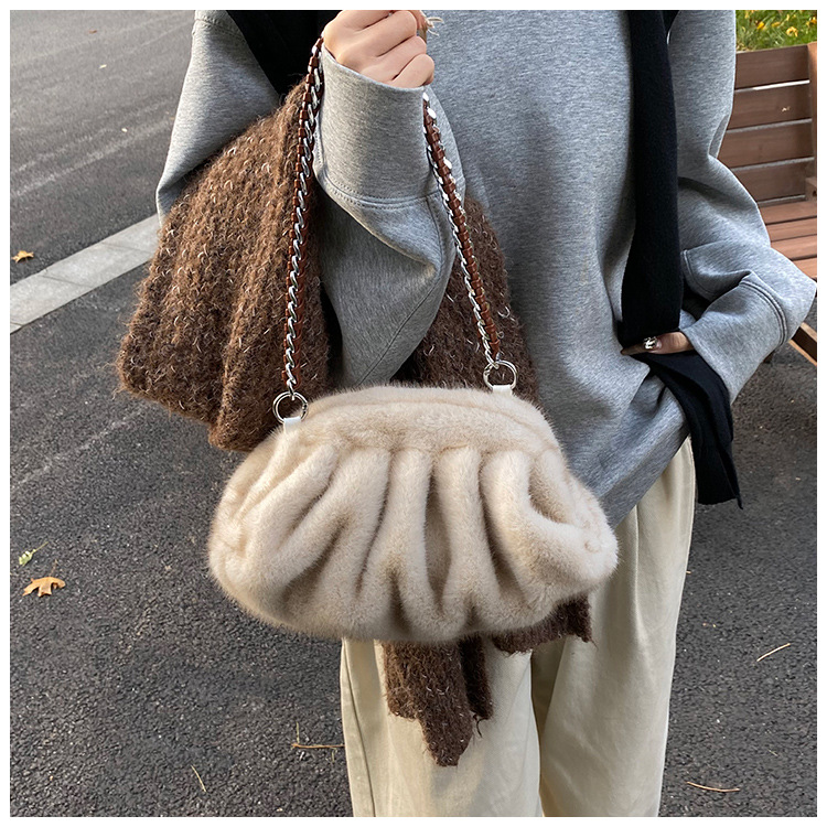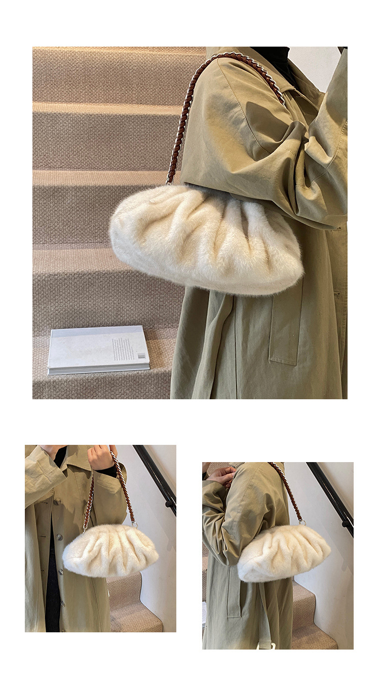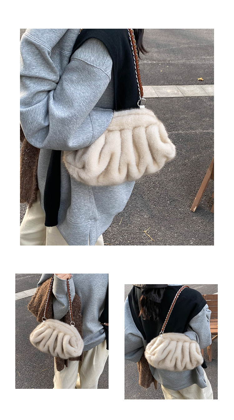 Faux Mink Fur Pleated Cloud Plush Shoulder Bag High-quality product featuring elongated shoulder bag, bag charms plush, mesh tote bag and more. Modern design that fits the latest trends. Premium materials ensure durability and comfort. Order now for special offers! Product designed with attention to every detail. Suitable for all occasions and personal styles.