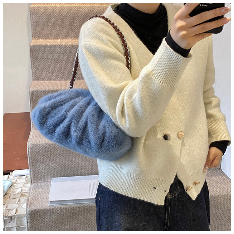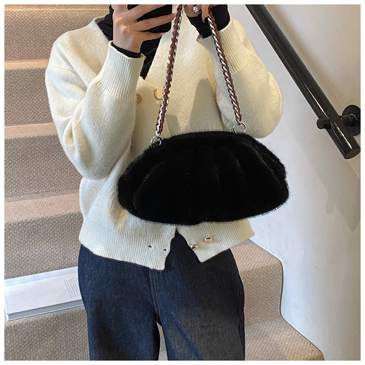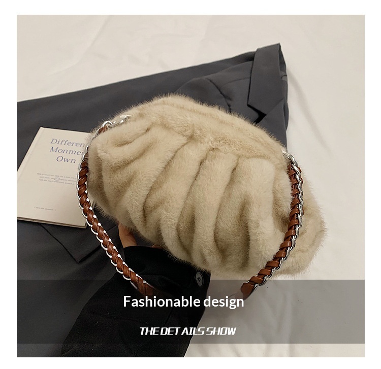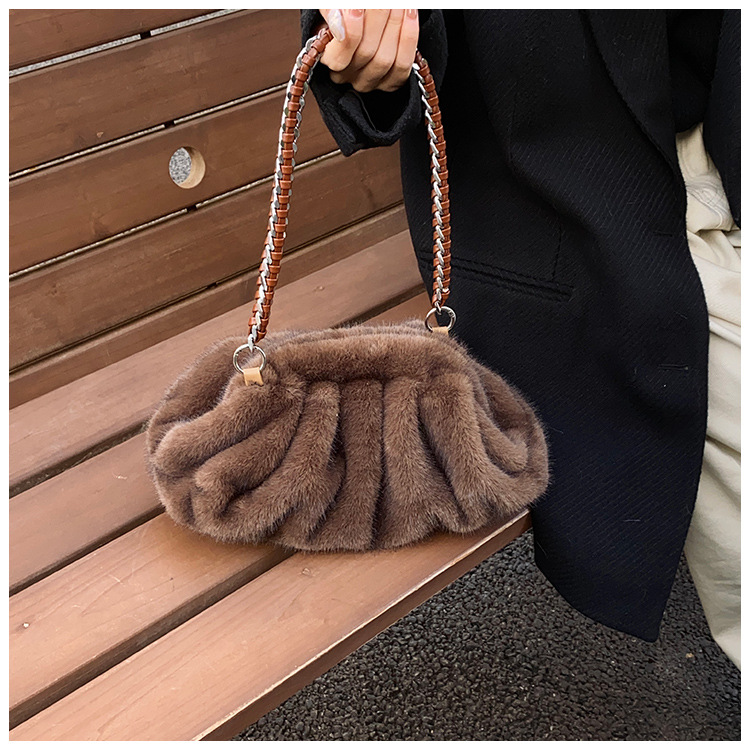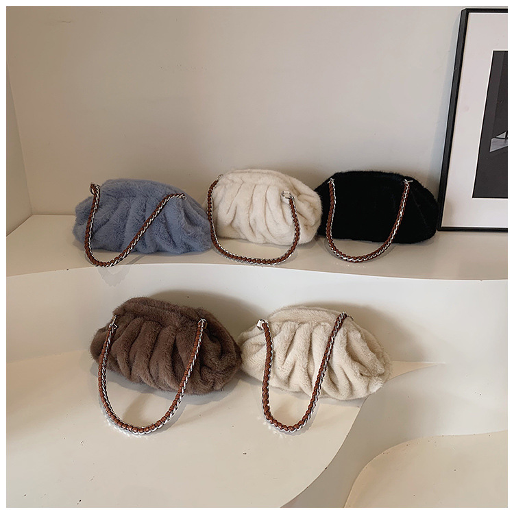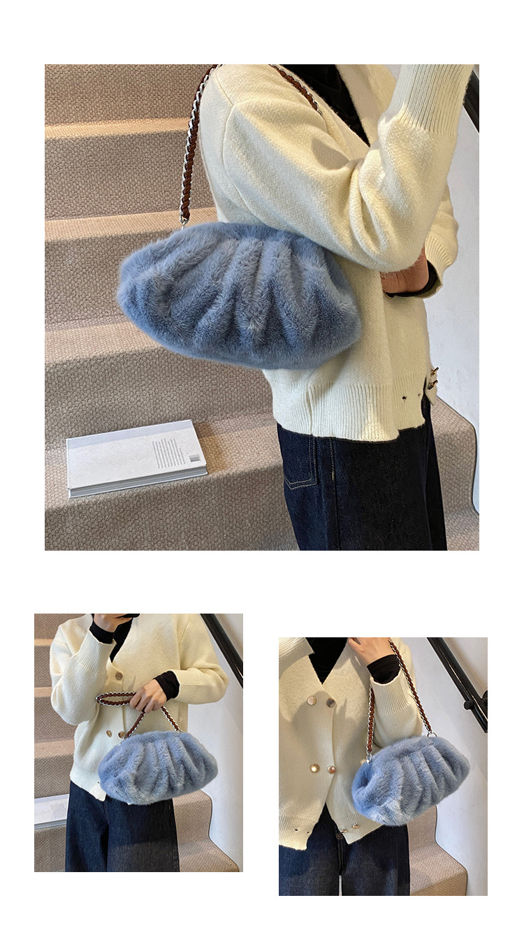 Faux Mink Fur Pleated Cloud Plush Shoulder Bag High-quality product featuring elongated shoulder bag, bag charms plush, mesh tote bag and more. Modern design that fits the latest trends. Premium materials ensure durability and comfort. Order now for special offers! Product designed with attention to every detail. Suitable for all occasions and personal styles.