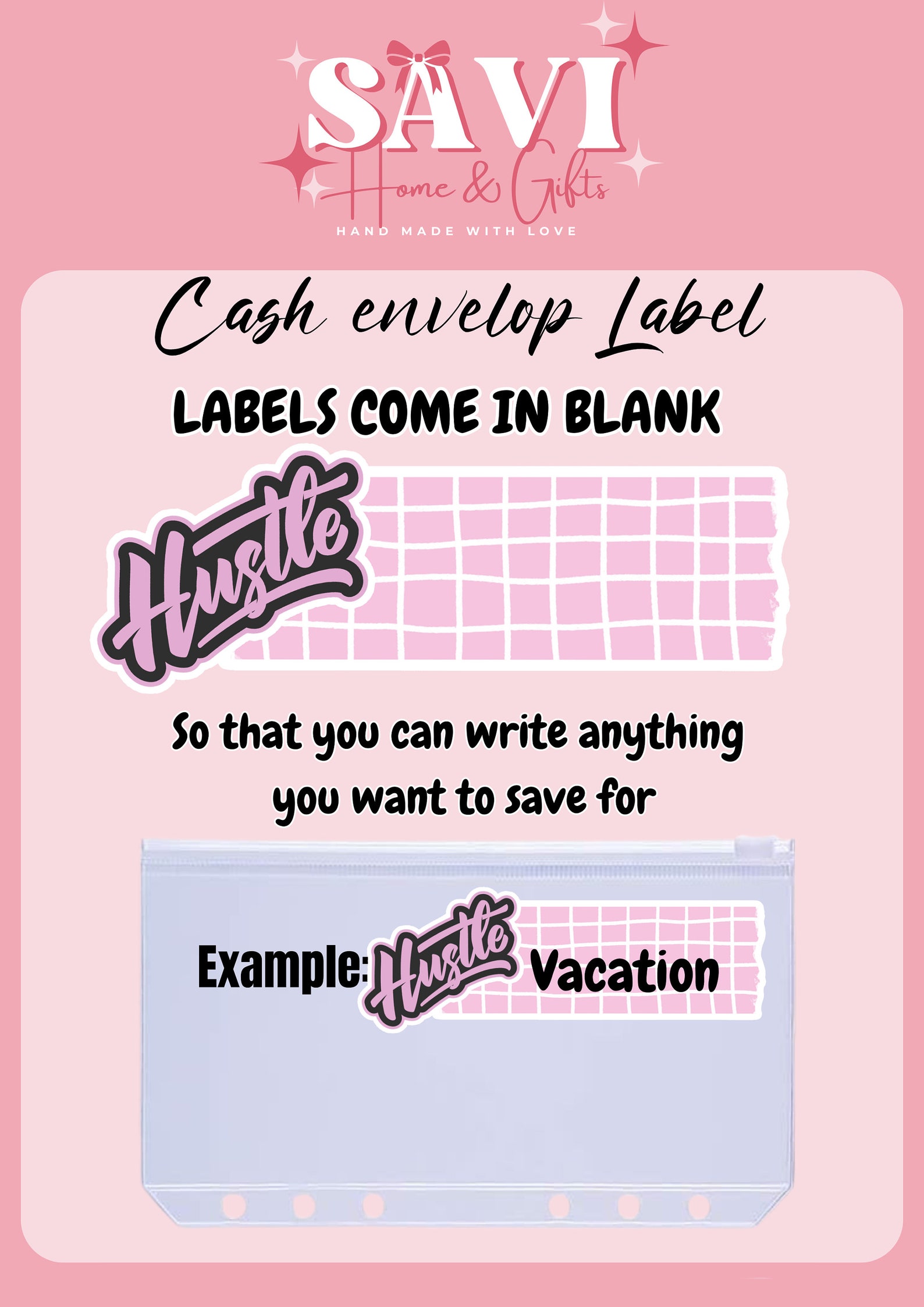 – Matching Label for each cash envelop ( not attached on the cash envelope)