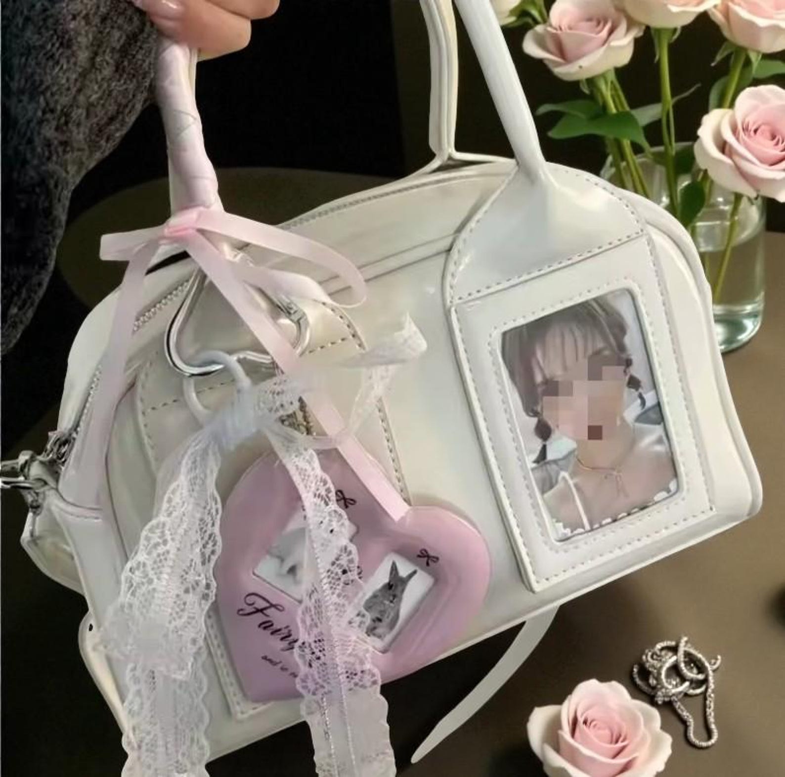 Show off your personality with this adorable ita bag — the perfect mix of cute and functional! Each bag features a transparent display window where you can showcase your favorite photos, photocards, pins, charms, or keychains without worrying about them getting damaged.