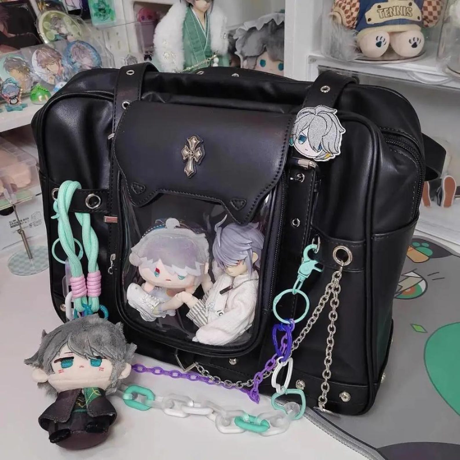 Our Harajuku Black Ita Backpack combines Japanese street style with modern functionality. Featuring a transparent display pocket, this chic backpack is perfect for showcasing pins, charms, and DIY badges while offering enough space for daily essentials. Designed for women who love Harajuku, it’s both practical and stylish – ideal for school, shopping, or casual outings.