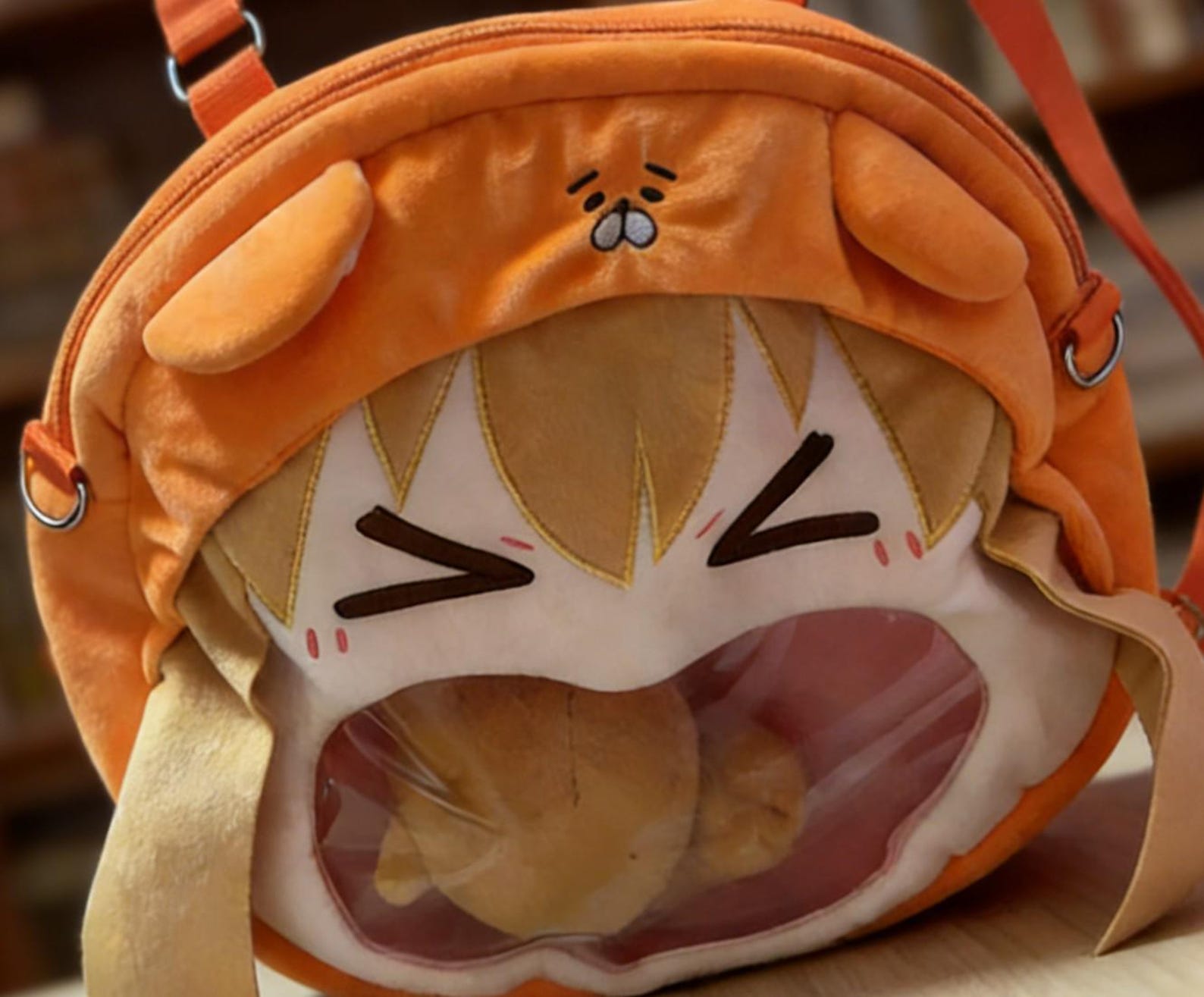 🐾 Anime-Inspired Plush Design: Funny and adorable Umaru-chan character bag from Himouto! Umaru-chan, featuring her iconic hamster hoodie and hilarious big-mouth expression.