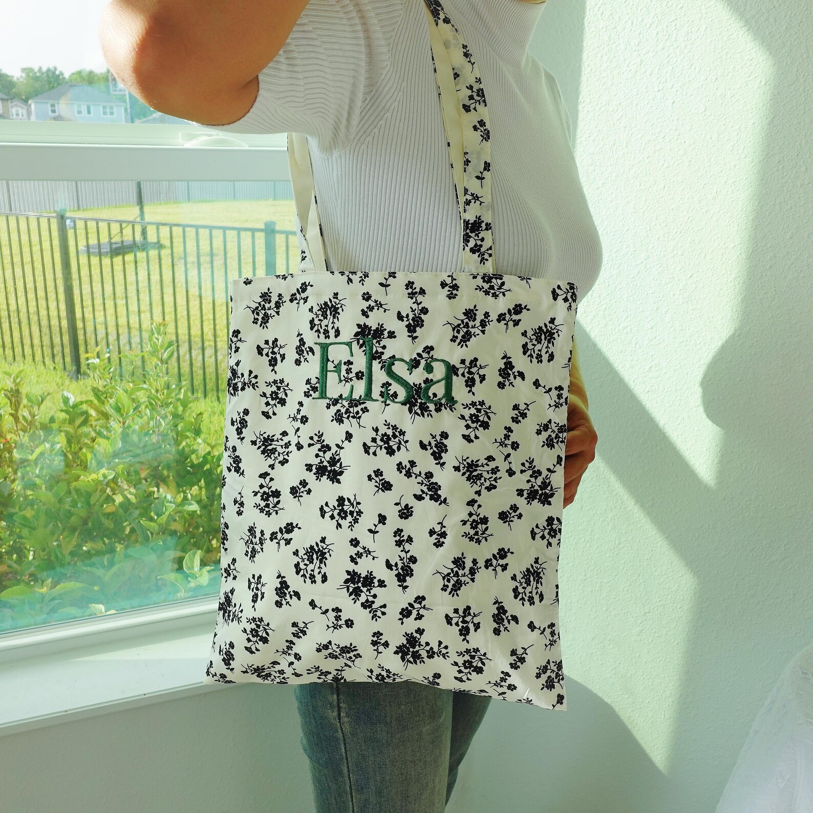Each tote is made from durable canvas with a soft, natural texture and delicate floral embroidery print, perfect for shopping, school, or a casual day out.