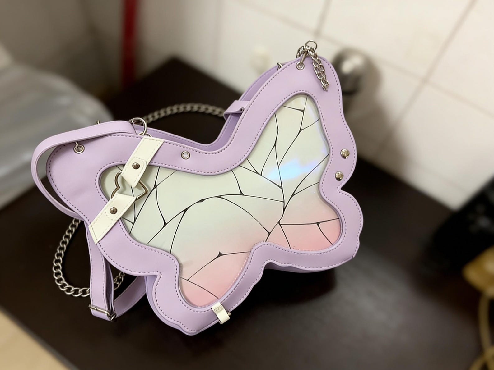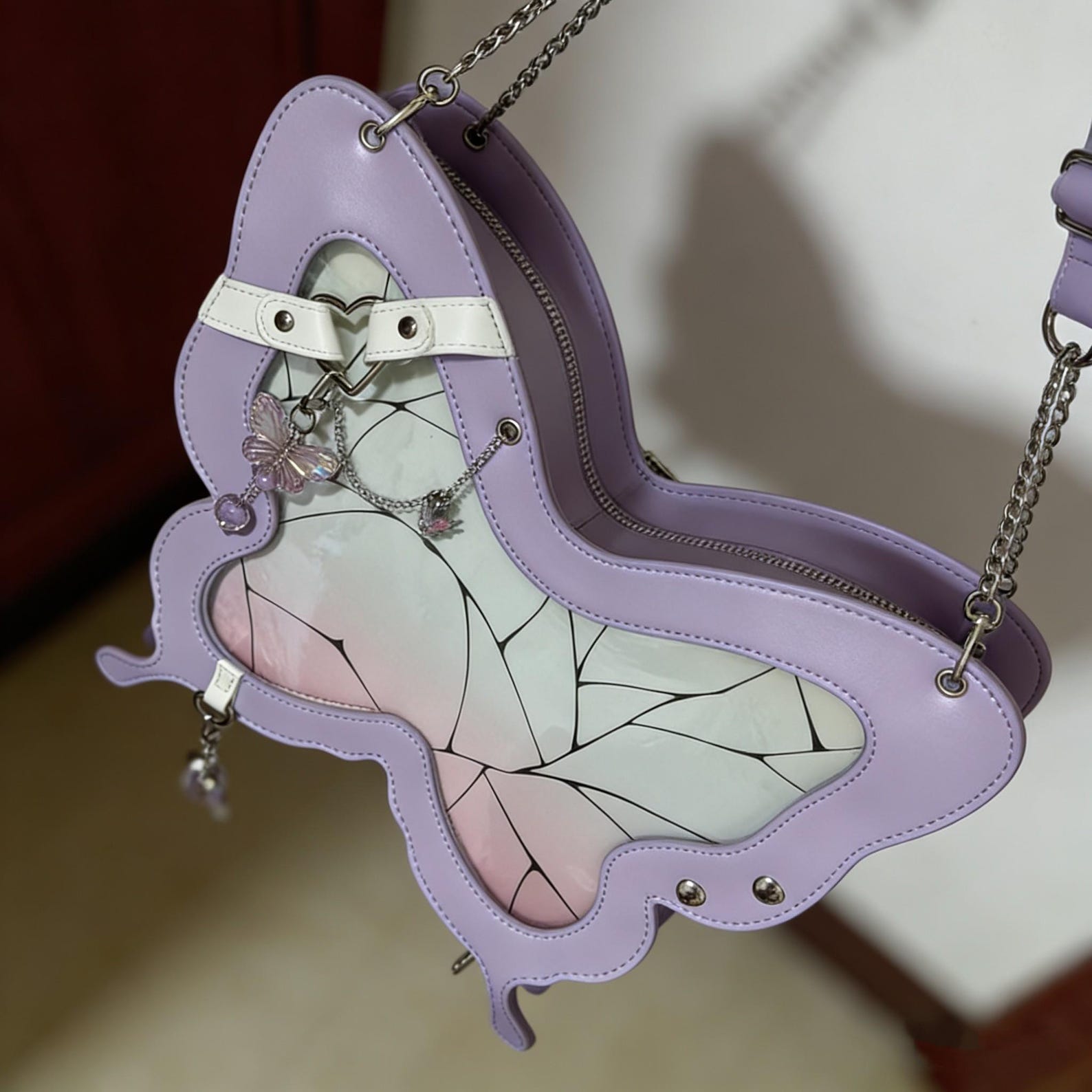 Irregular Butterfly Ita Backpack – PU Leather Clear Display Bag for Pins, Keychains & Anime Merch | Unique Gift for Collectors