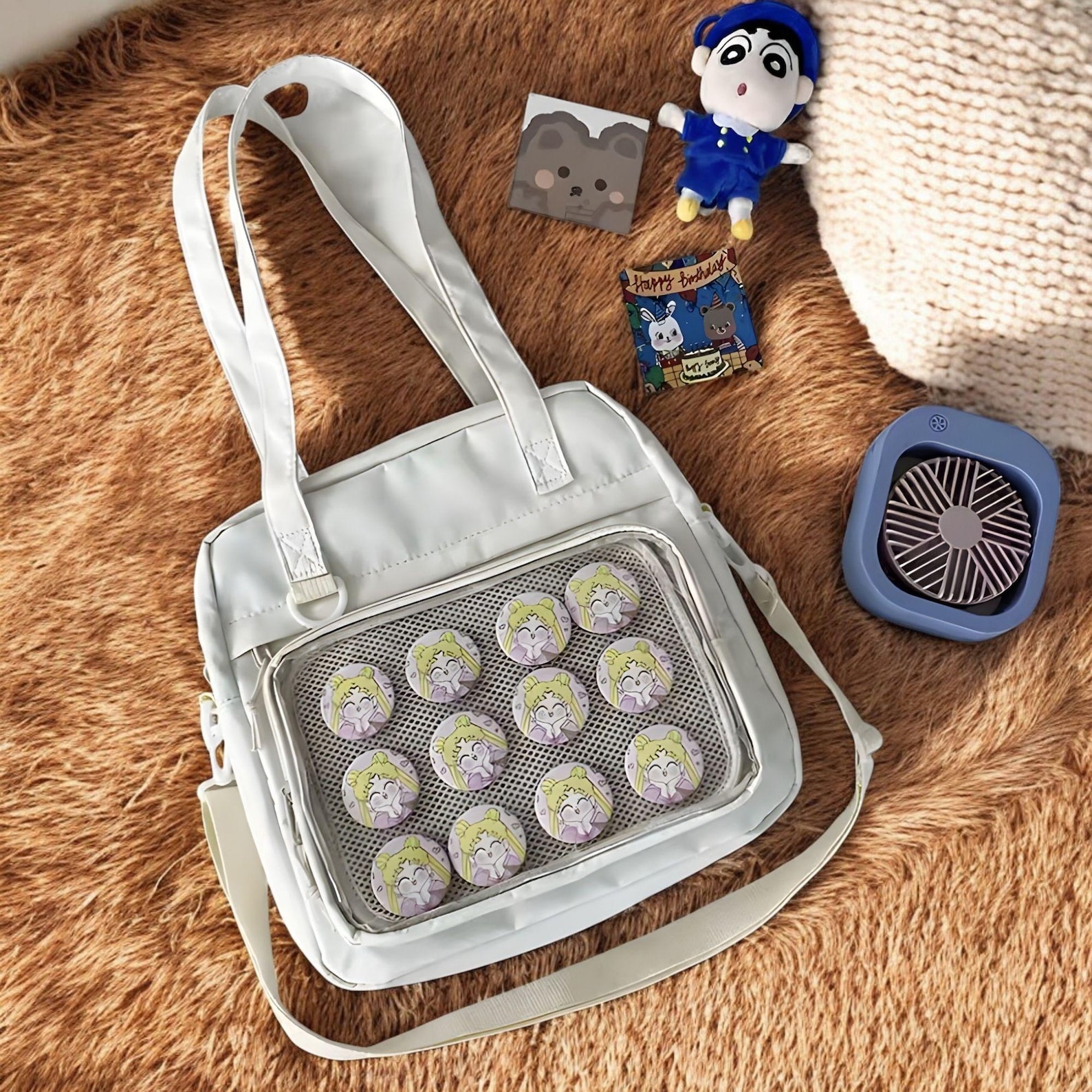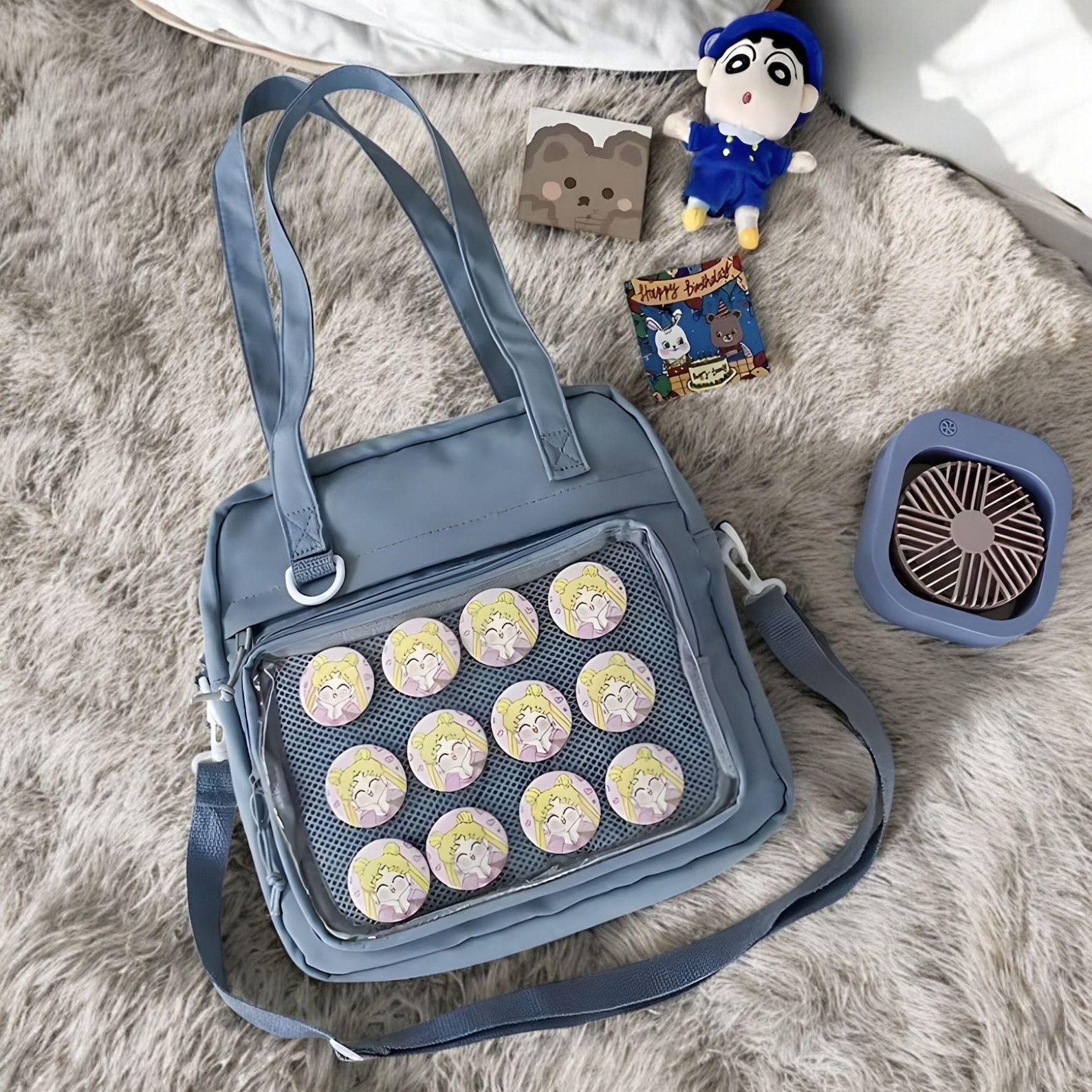 Crafted with premium polyester and PU leather, this bag combines style and functionality. Perfect for pin collectors, anime lovers, and anyone seeking a unique accessory!