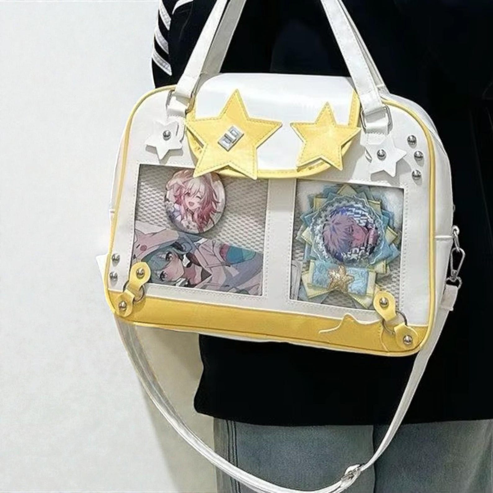 ✨: Show off your style with this star ita shoulder bag, designed to display pins, photocards, plushies, and collectibles.