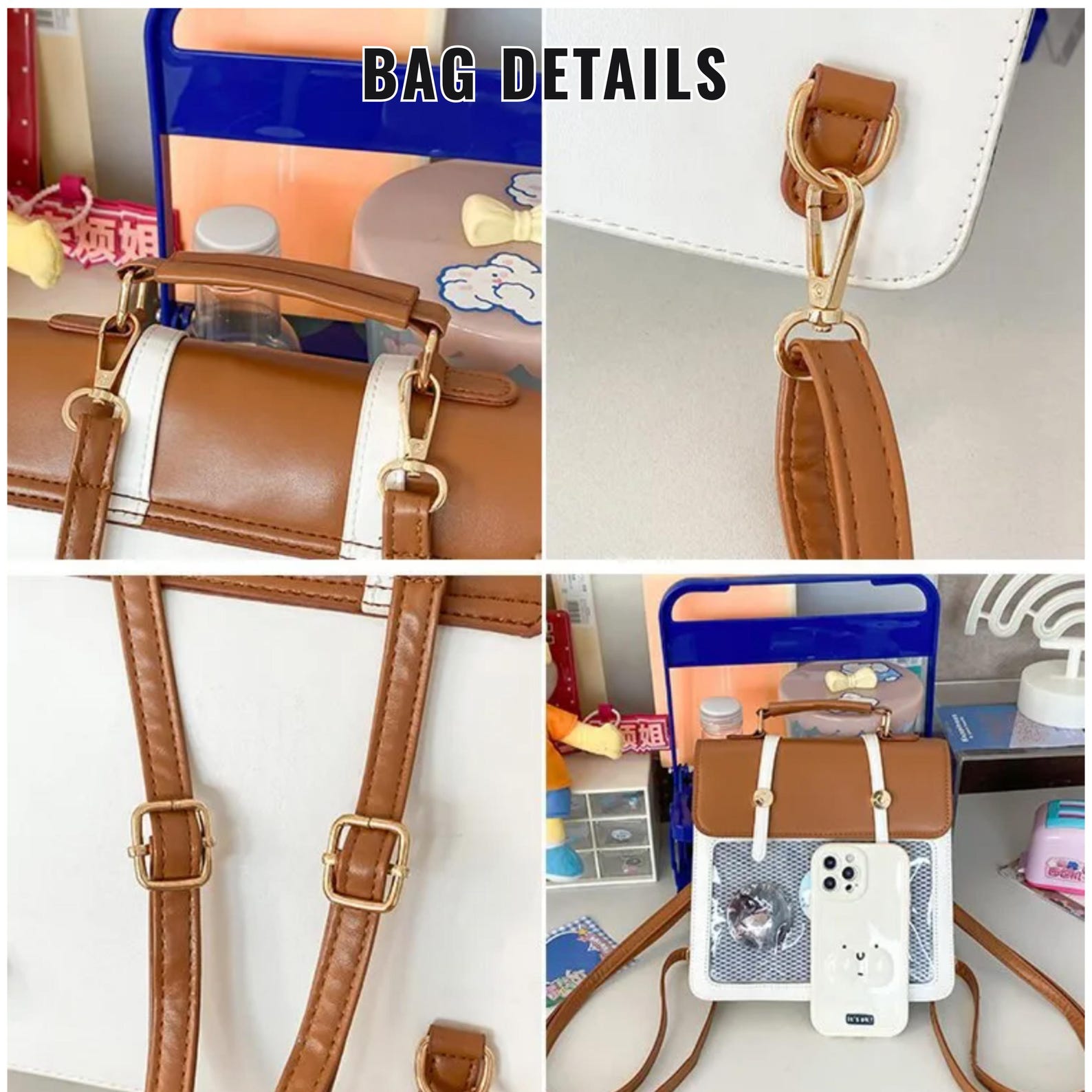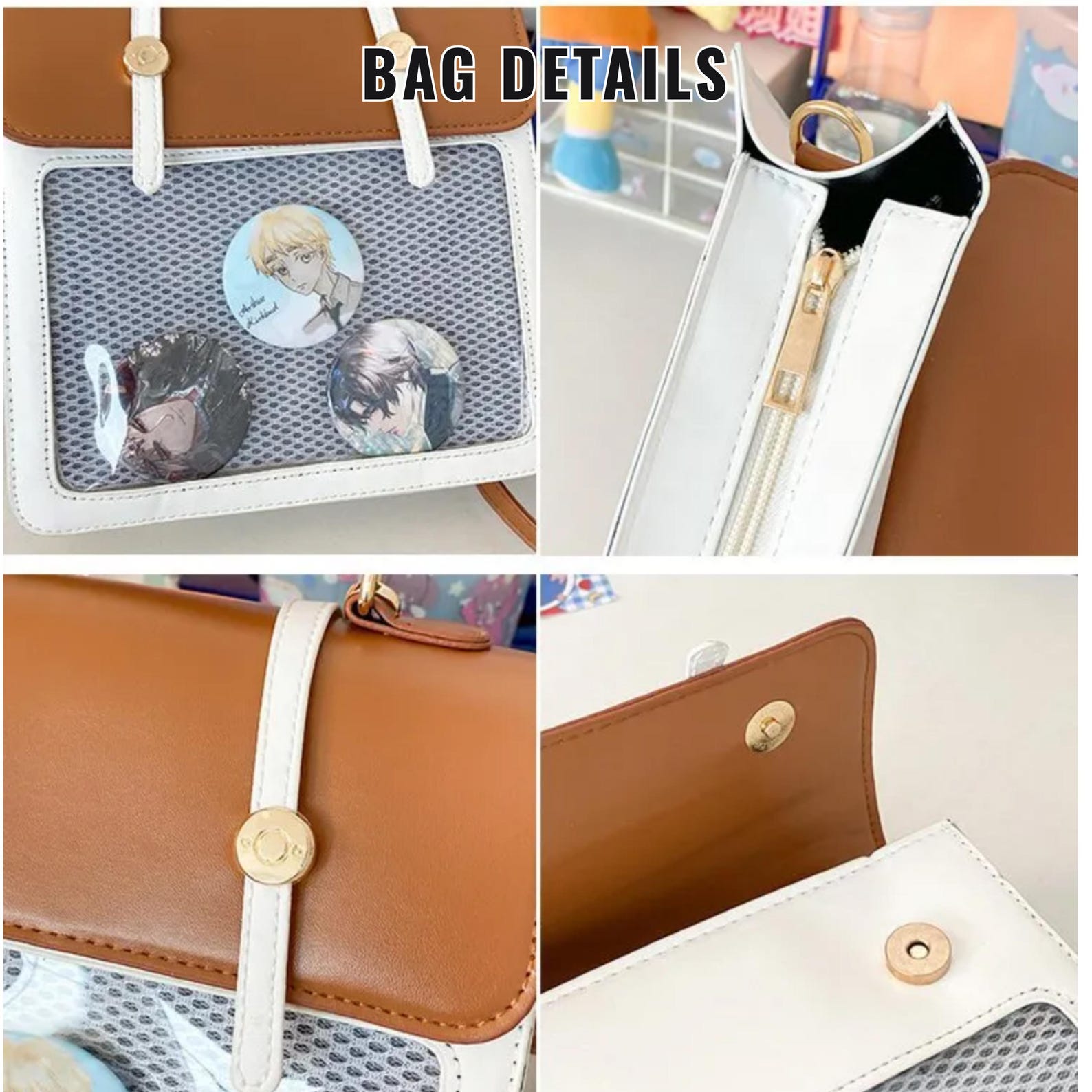 Show off your pins, charms, and collectibles with this stylish Japan-style Ita Bag! This versatile bag can be worn as both a backpack and a crossbody bag, making it perfect for everyday use, conventions, or cosplay events.