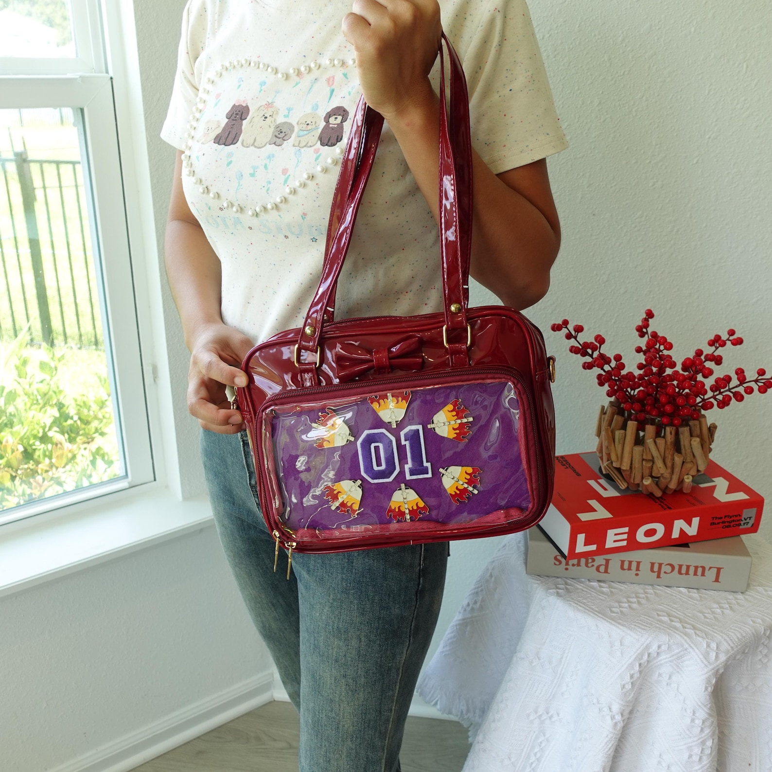 Looking for the perfect mix of cute and chic? This faux leather ita bag with a bow accent is perfect for showcasing your pins, charms, or small collectibles while staying fashionable.