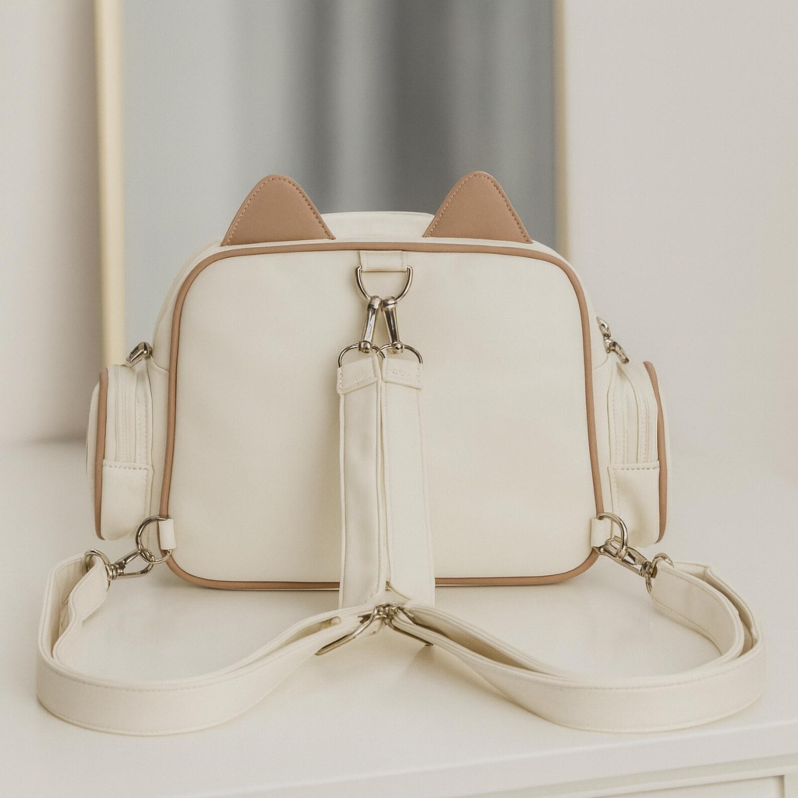 Cute cat design with ears and embroidered details
