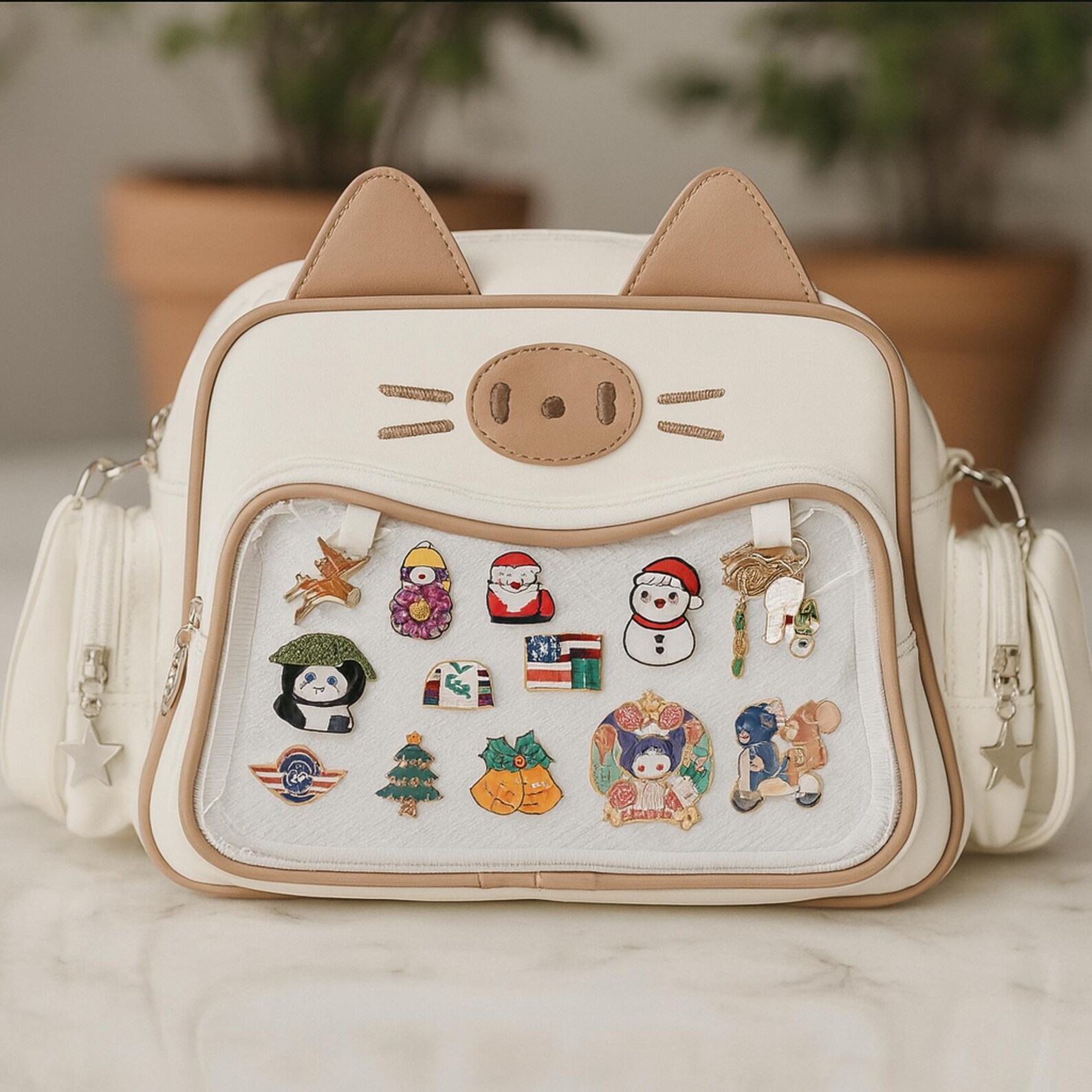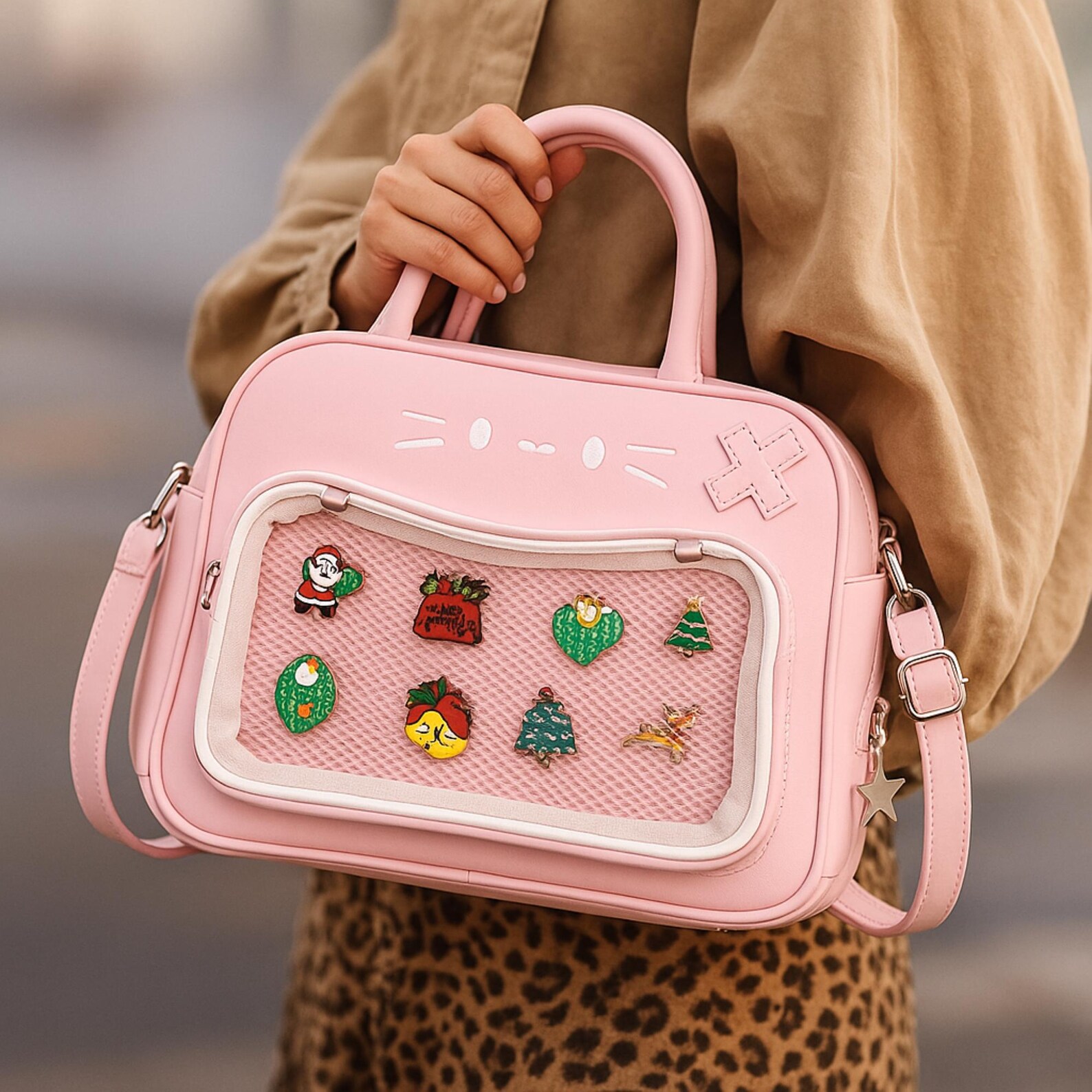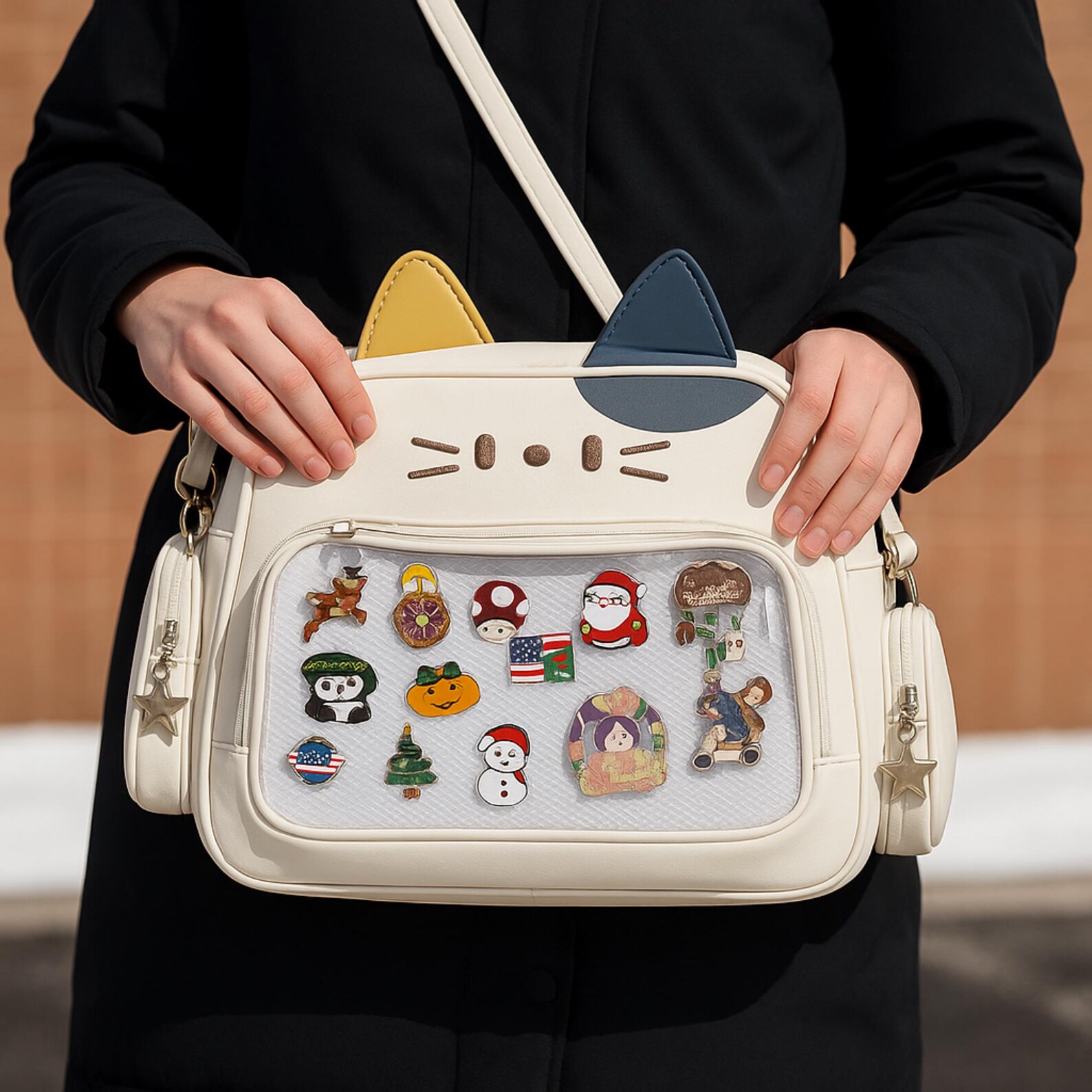 ⭐ Kawaii Cat Display Crossbody – Perfect for Pins, Keychains & Collectibles