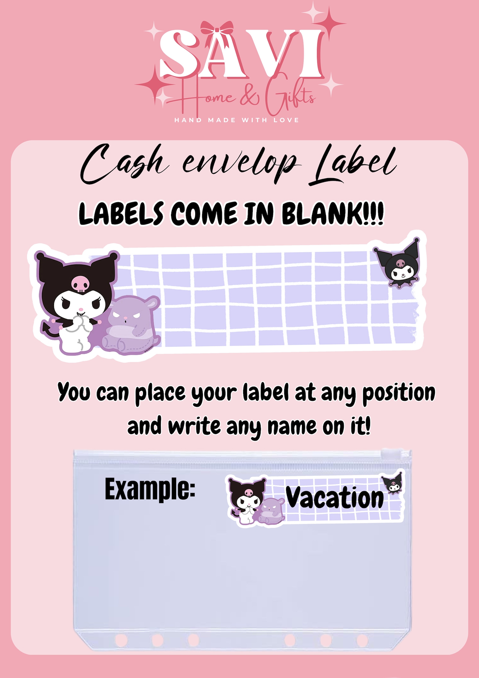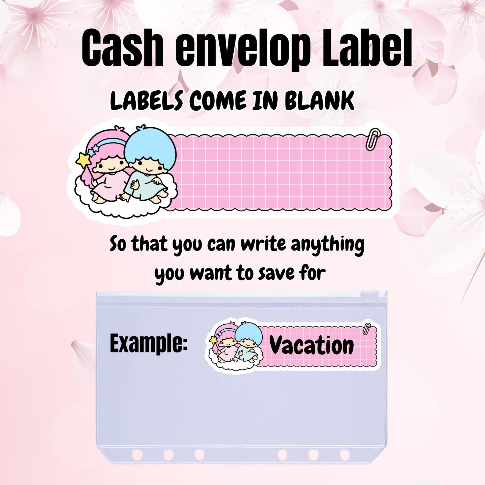 – Matching Label for each cash envelop ( not attached on the cash envelope)