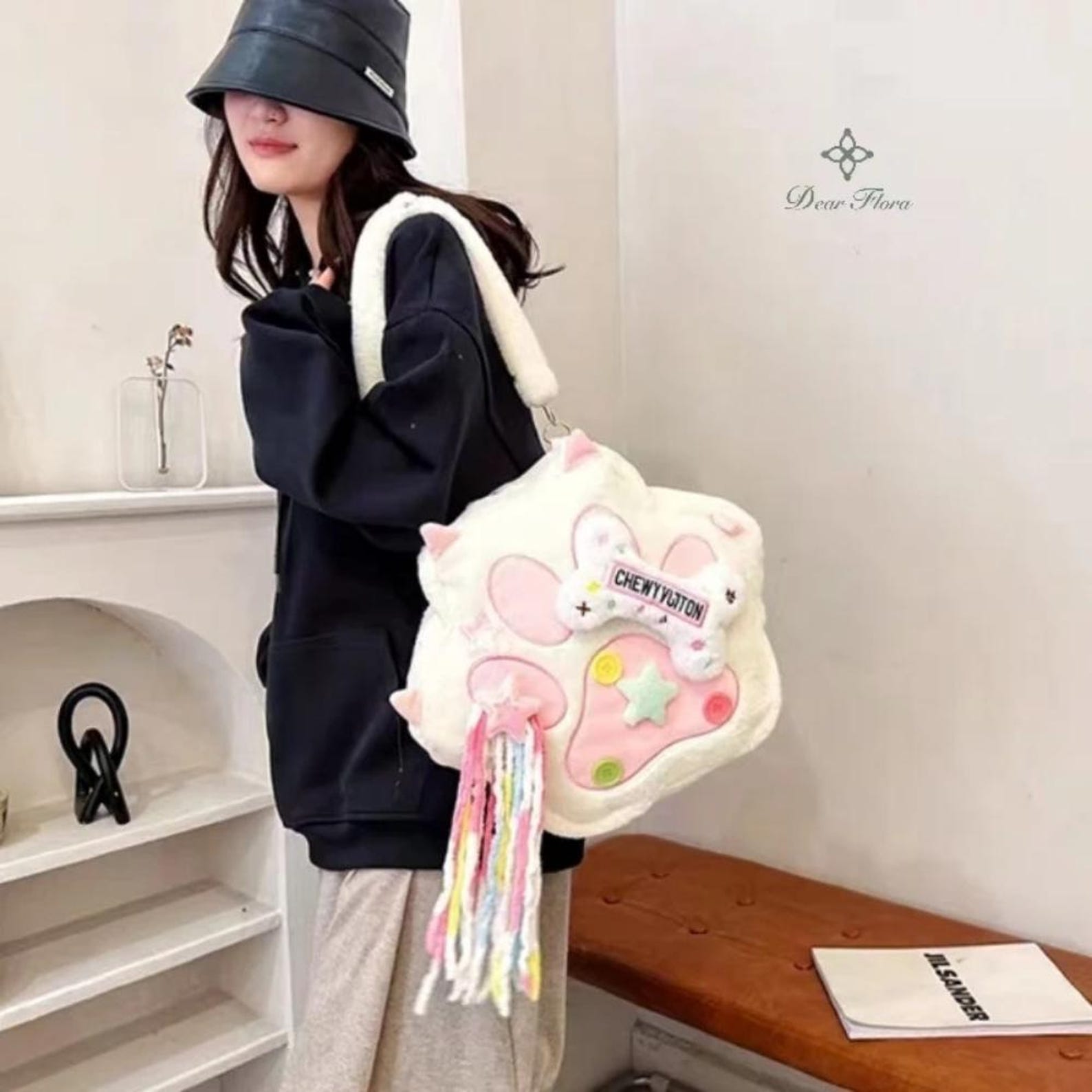 Bring extra charm to your look with this Kawaii Furry Paw Rucksack! Designed with soft plush patchwork fabric and a playful paw motif, this bag blends Y2K fashion vibes with everyday practicality.