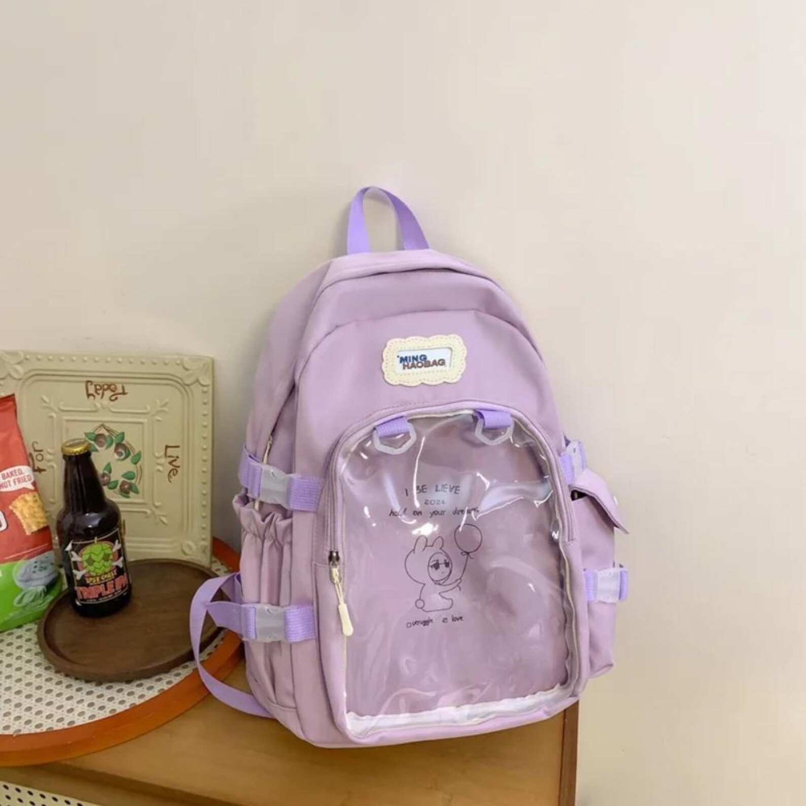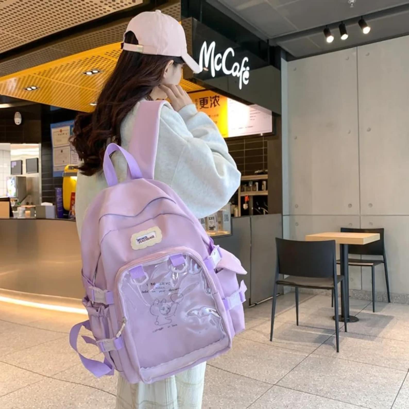 This Japanese Kawaii Ita Backpack is designed for women, teens, and students who love Harajuku and anime-inspired fashion. With a transparent PVC front display panel, it’s perfect for showcasing 20cm plush dolls, pins, or charms, while offering plenty of room for books, stationery, or daily essentials.