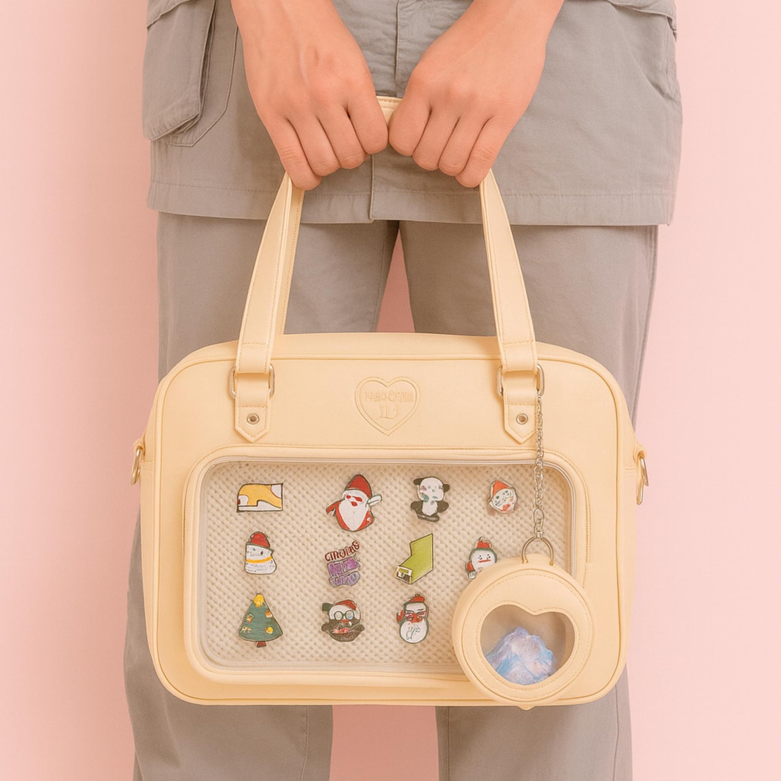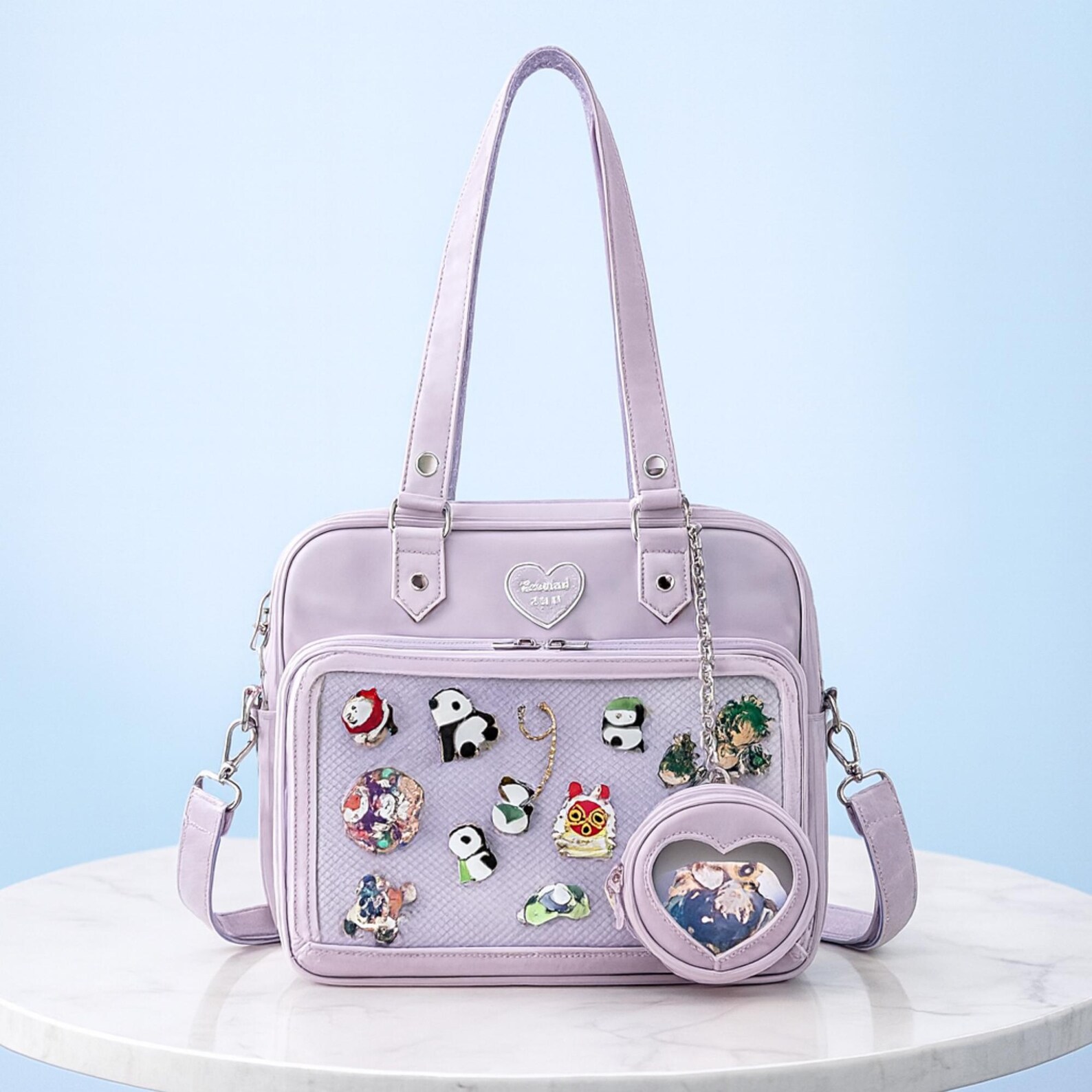Showcase your favorite enamel pins, keychains, photo cards, and charms with this Ita Bag crossbody designed for anime fans, collectors, and cosplay lovers. Made to protect and highlight your collection, this bag offers the perfect balance of style, durability, and functionality.