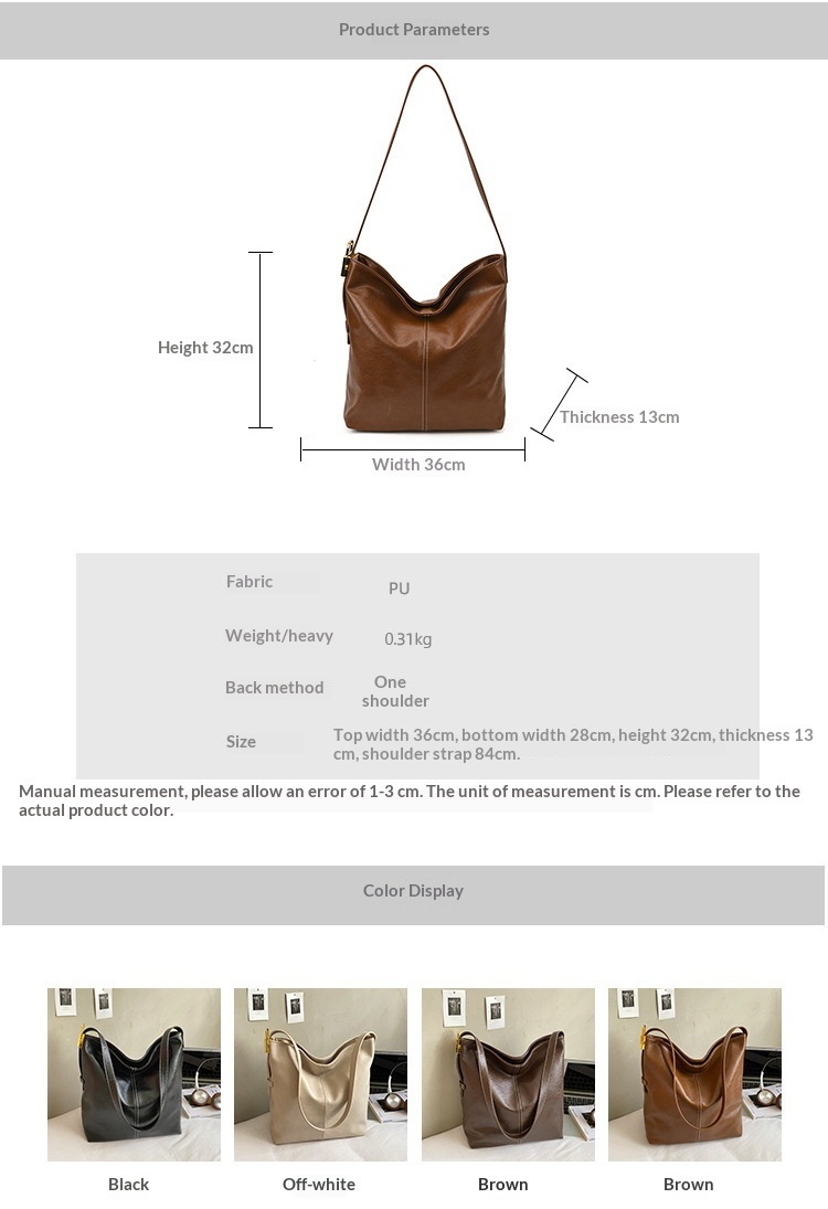 Been using Large-capacity Textured Soft Leather Bag In A Korean-style Single-shoulder Design daily and I appreciate— color accuracy—looks like the photos, Small touch, big difference. Glad I picked Large-capacity Textured Soft Leather Bag In A Korean-style Single-shoulder Design up.