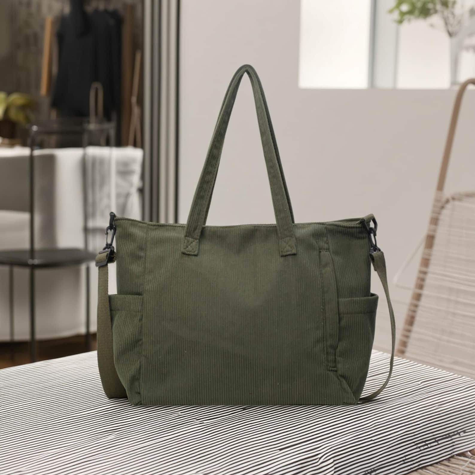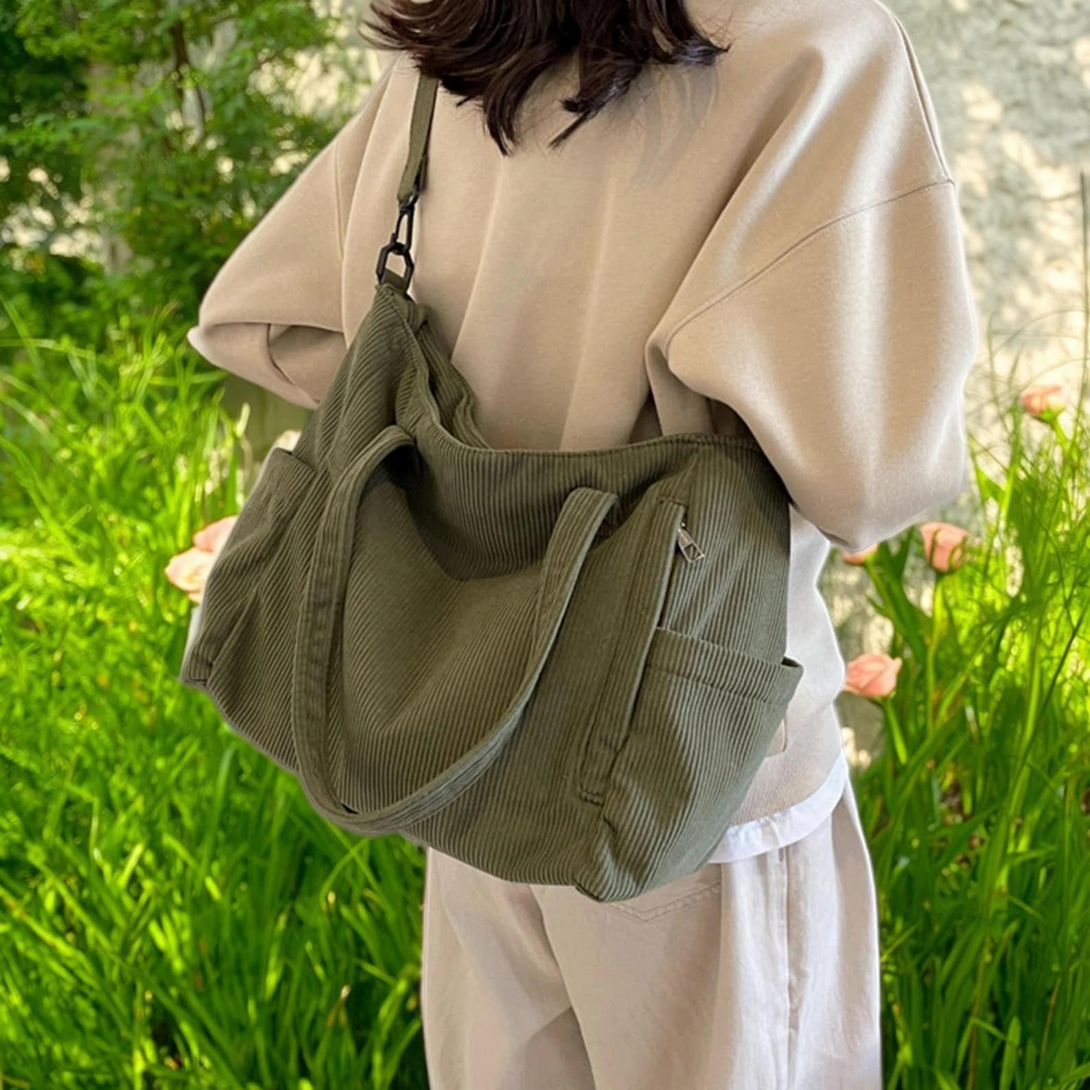 Large Corduroy Crossbody Tote Bag, Personalized Crossbody Bag, Retro School Bag, Casual Shoulder Bag for Travel, Large Tote Bag for Women