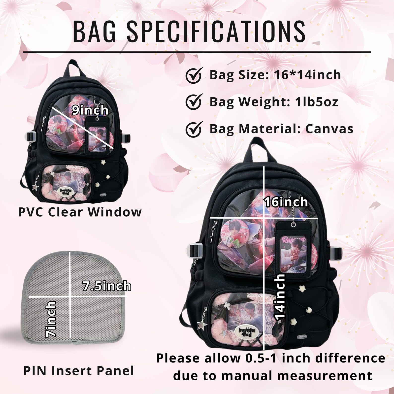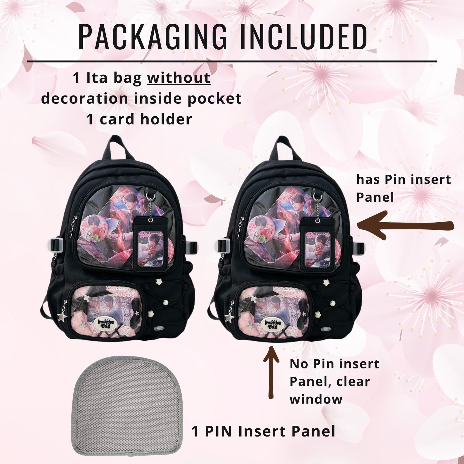 Large ita backpack with 2 clear window, ITA Backpack,enamel pin display bag,anime convention bag, clear window ita backpack, school backpack
