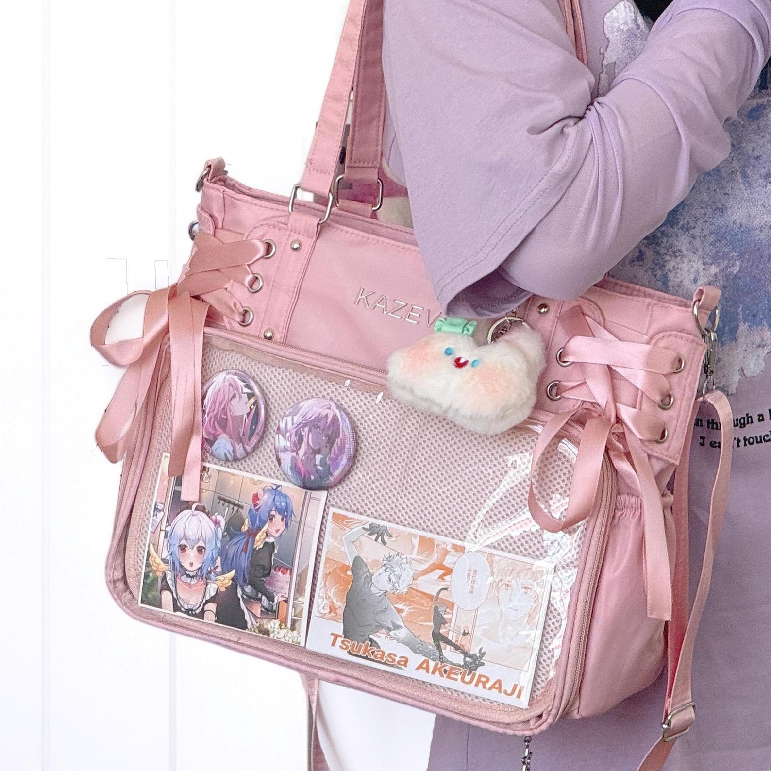 Show off your favorite pins, keychains, and plushies in style with this adorable and functional Oxford fabric Ita Bag — perfect for daily use or conventions!